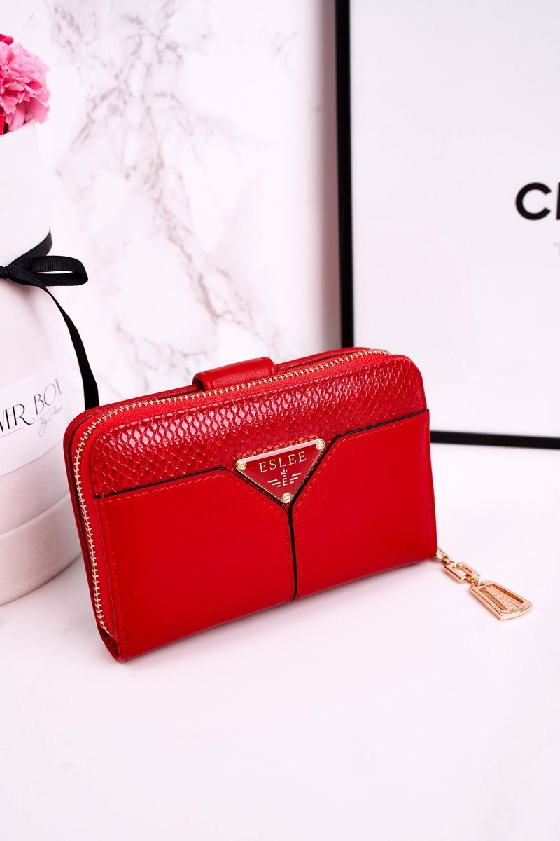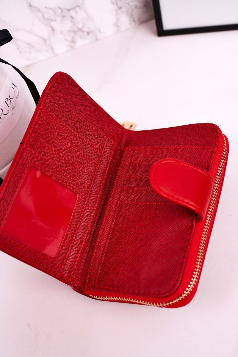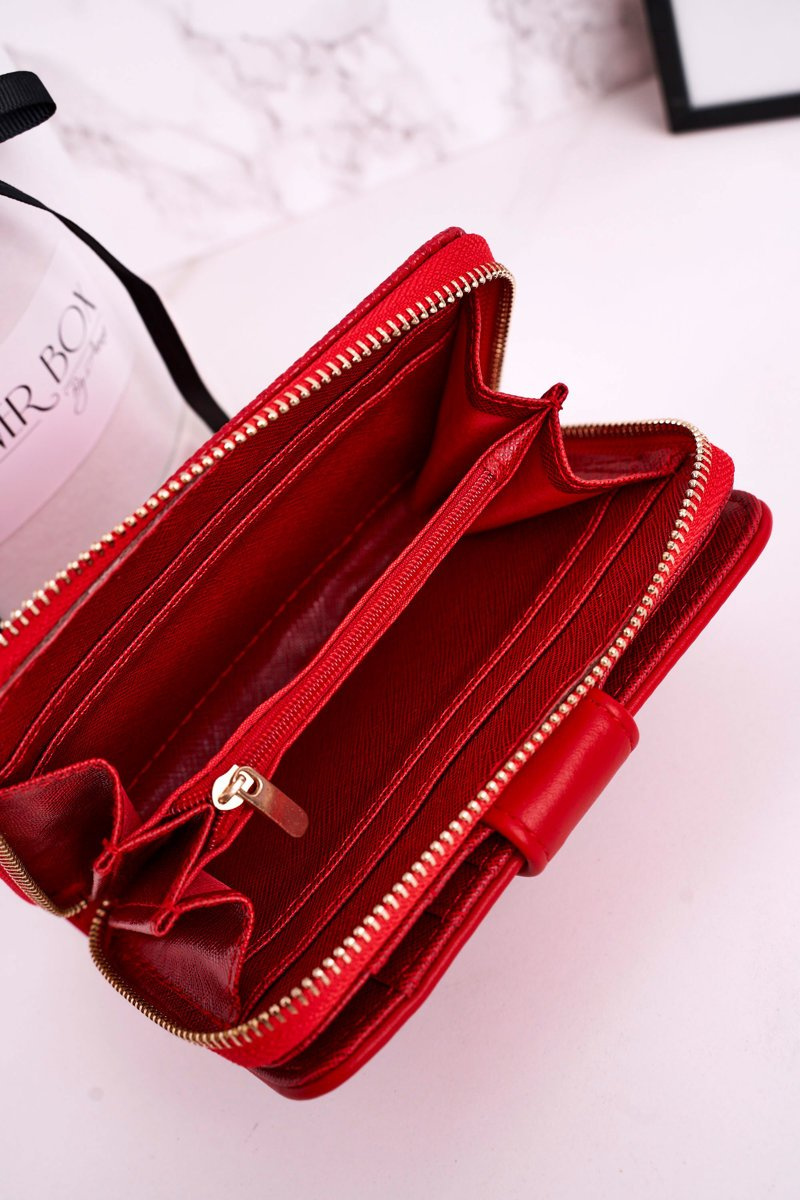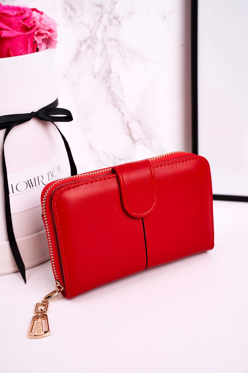 Elegancki Portfel Damski Zapinany na Suwak Czerwony