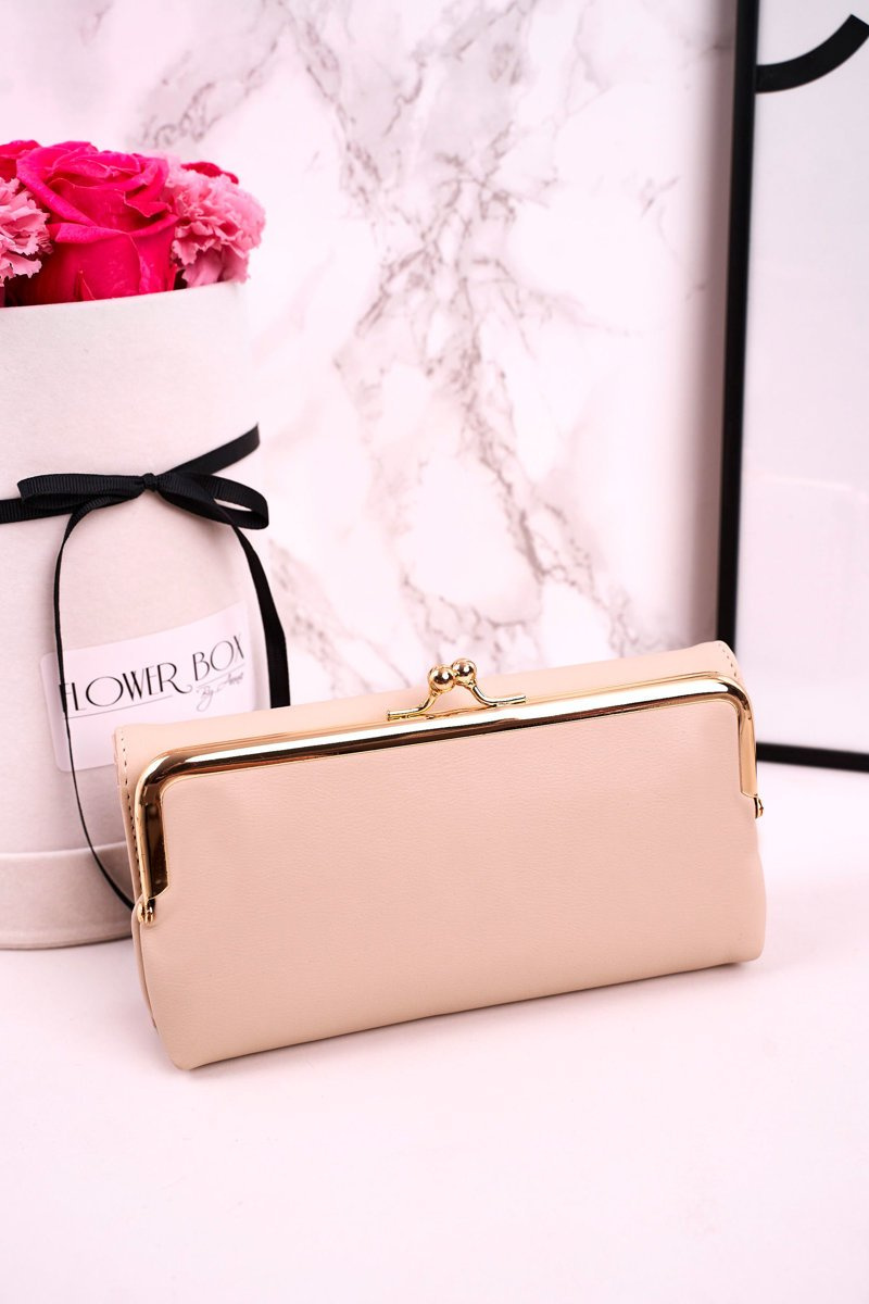 Duży portfel damski zapinany na bigiel. Portfel pomieści bilon, banknoty oraz karty płatnicze. Wykonany ze skóry ekologicznej.