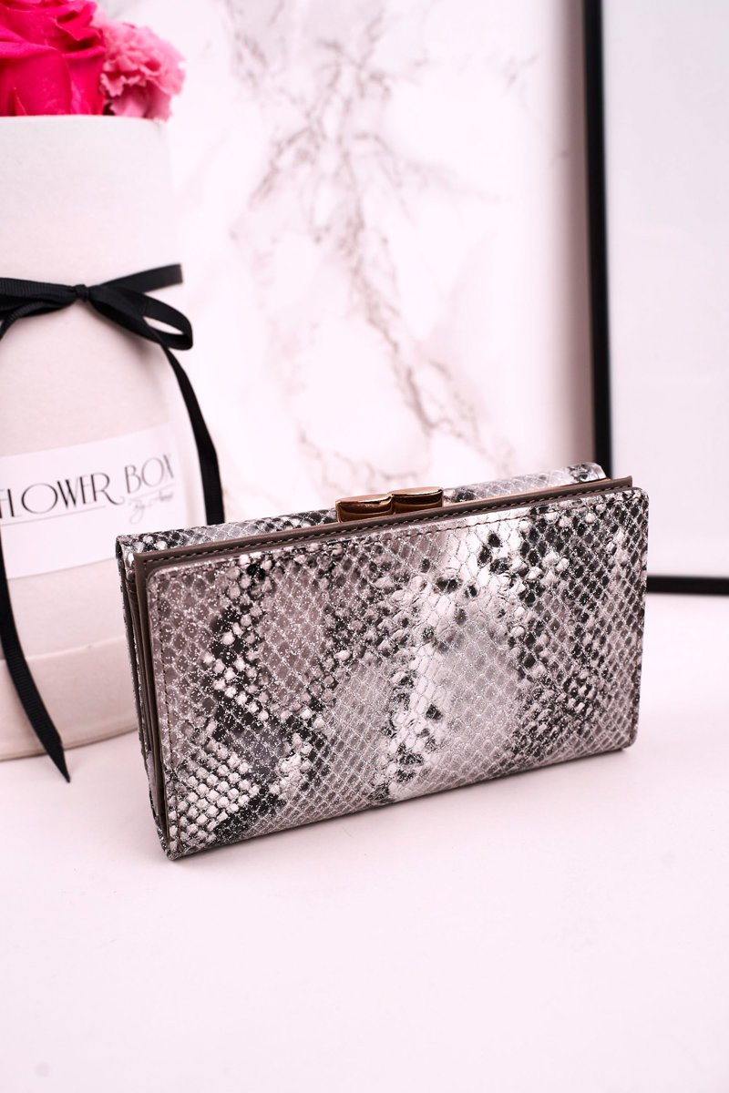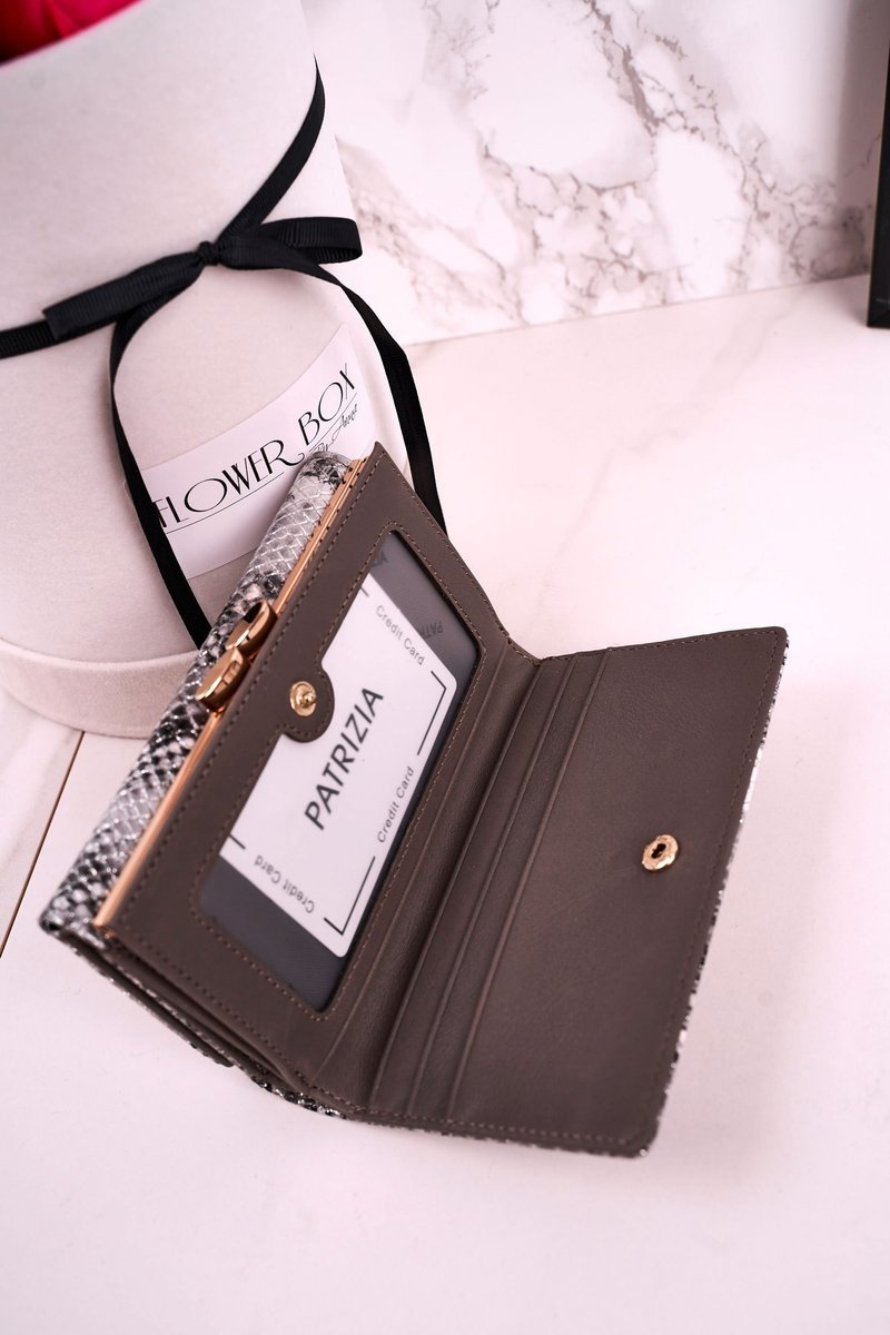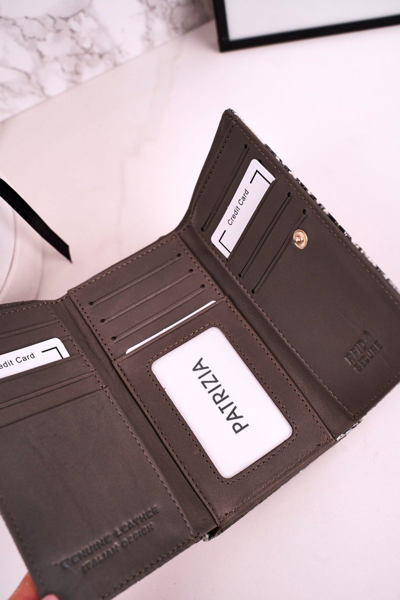 Elegancki portfel damski marki PATRIZIA. Portfel pomieści bilon, banknoty oraz karty płatnicze. Wykonany z lakierowanej skóry naturalnej, wykończony zwierzęcym printem.