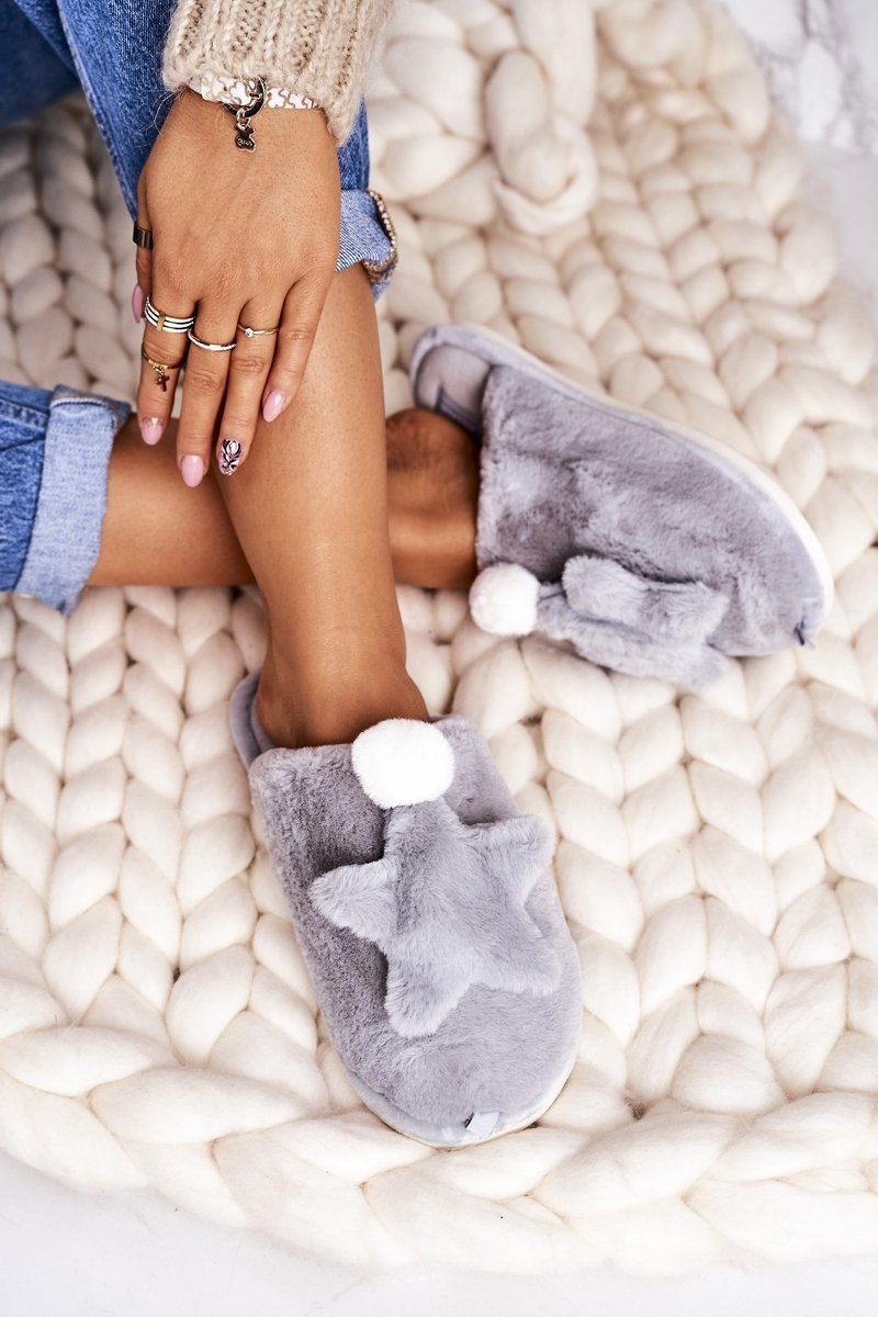 Damskie Papcie Z Futerkiem I Gwiazdką Szare Night-Night