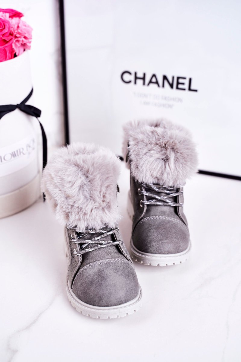 Dziecięce Ocieplane Traperki Z Futerkiem Szare Nella