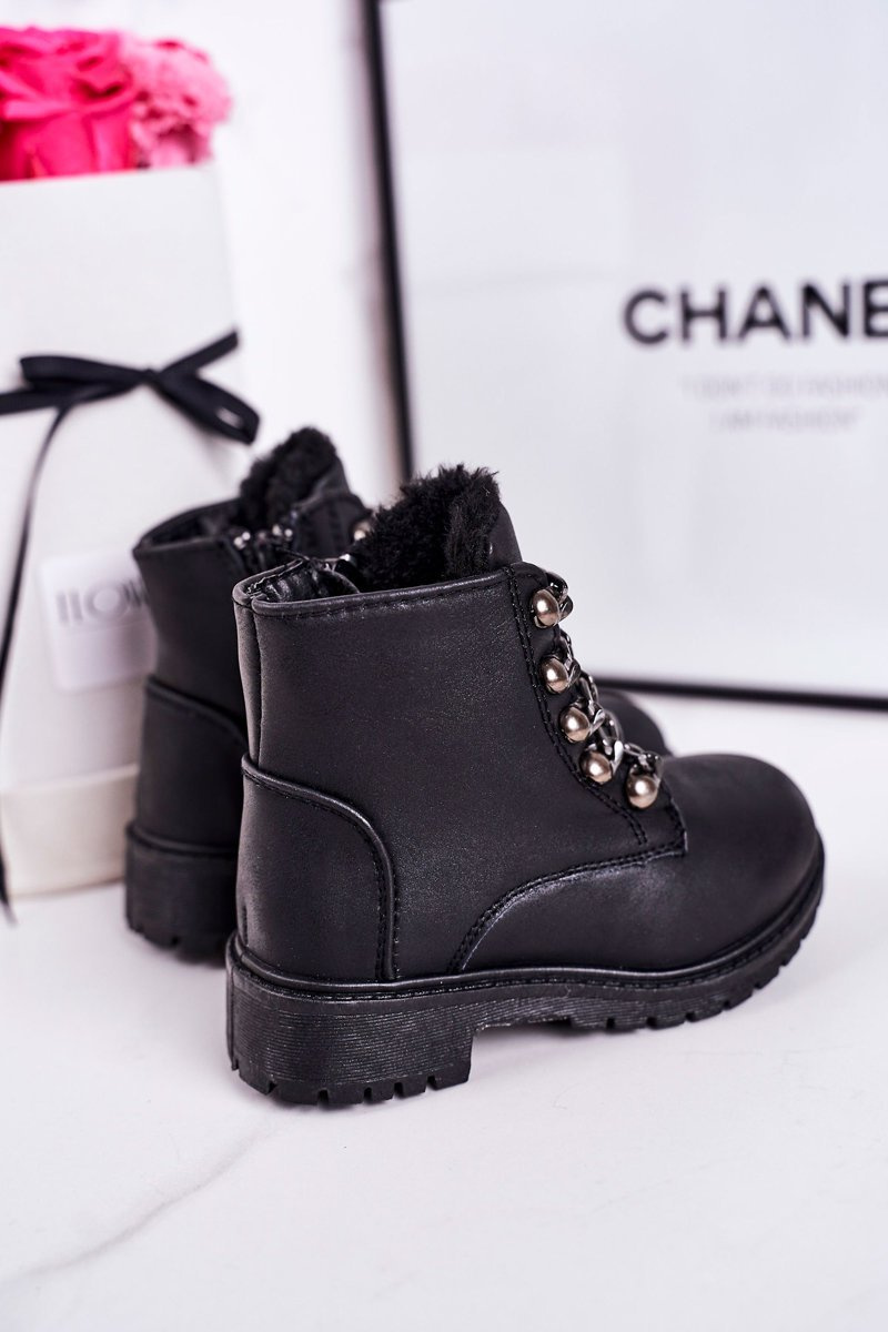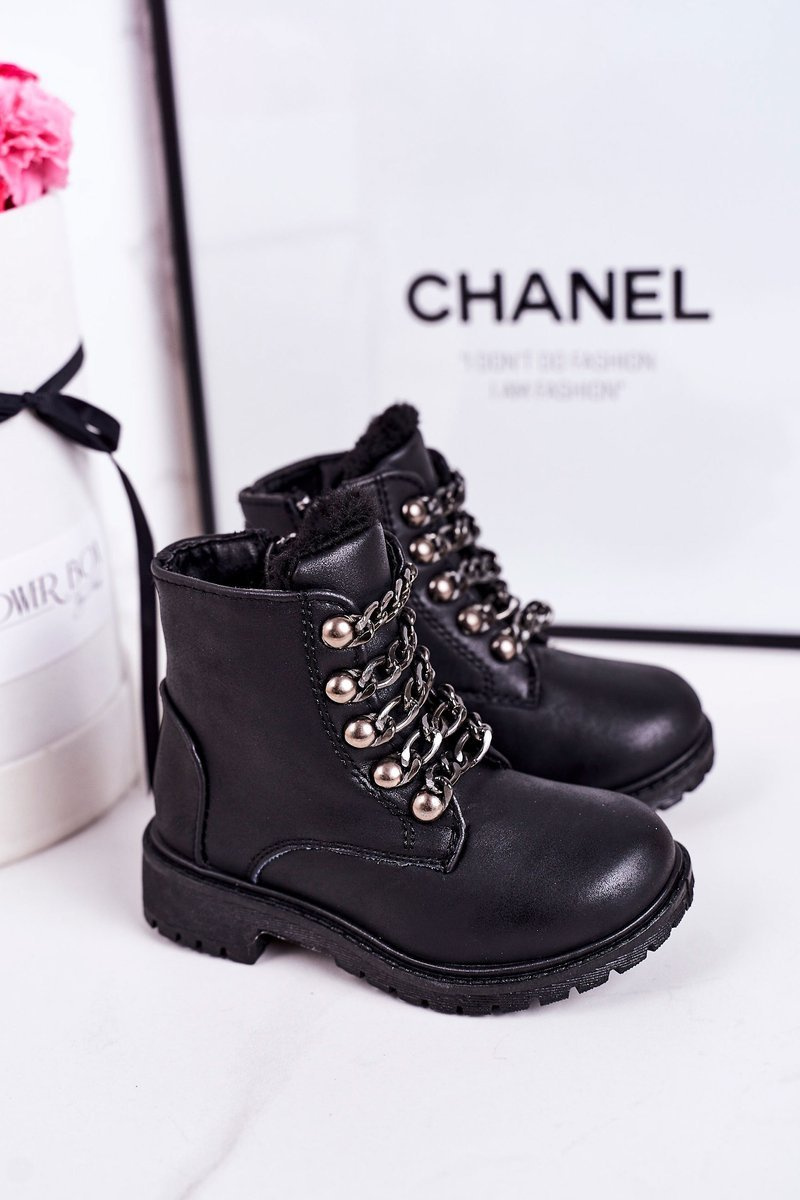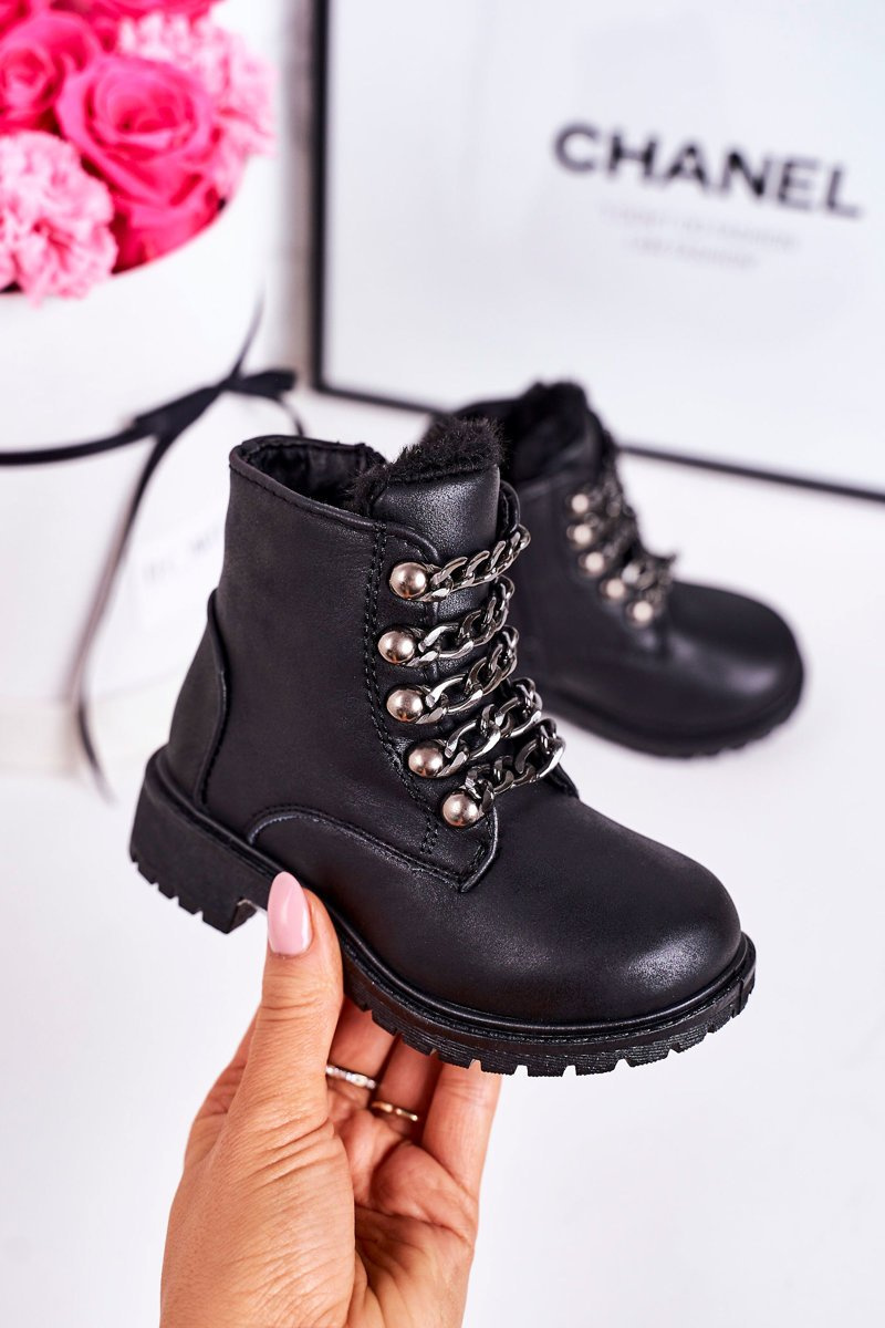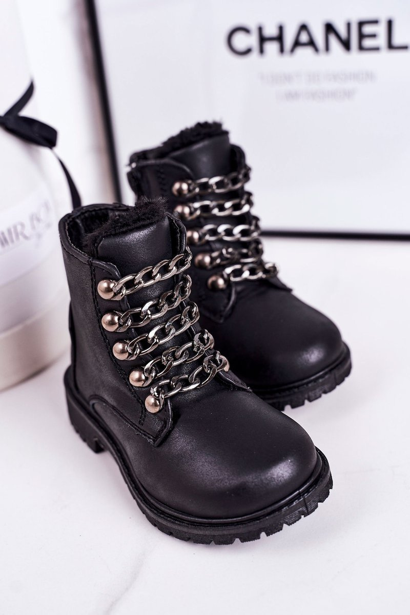 Dziecięce Ocieplane Traperki Eko Skóra Łańcuch Czarne Rock&Roll