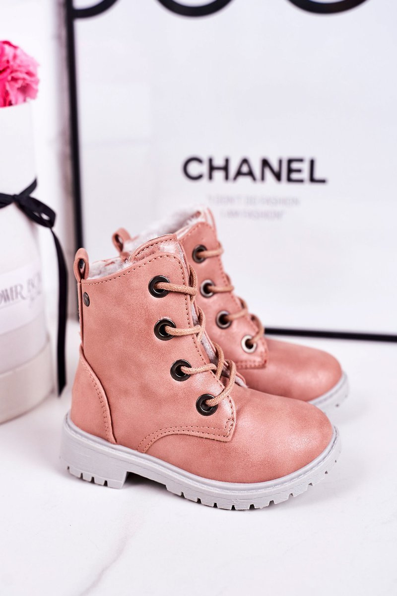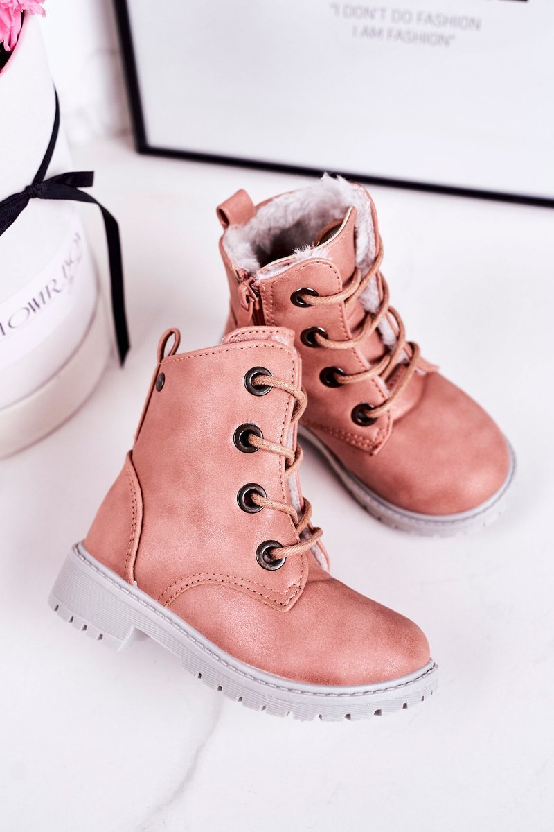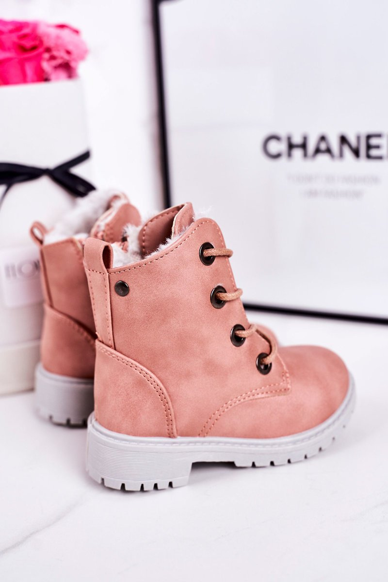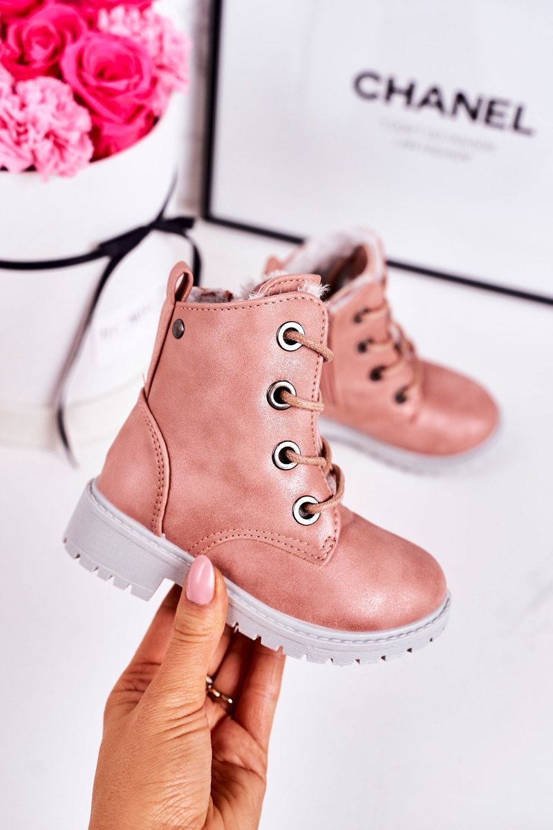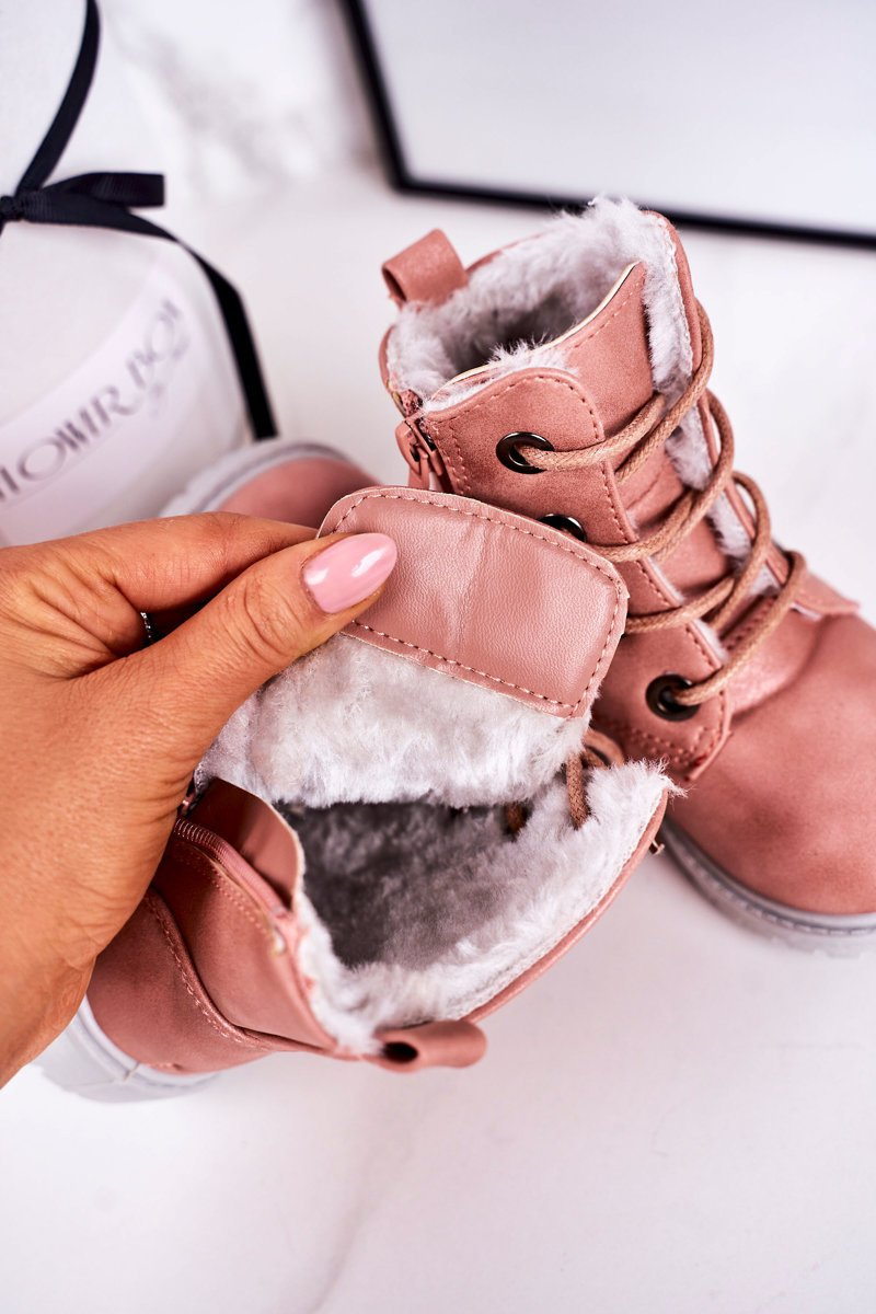 Dziecięce Traperki Botki Ocieplane Futerkiem Różowe Mia