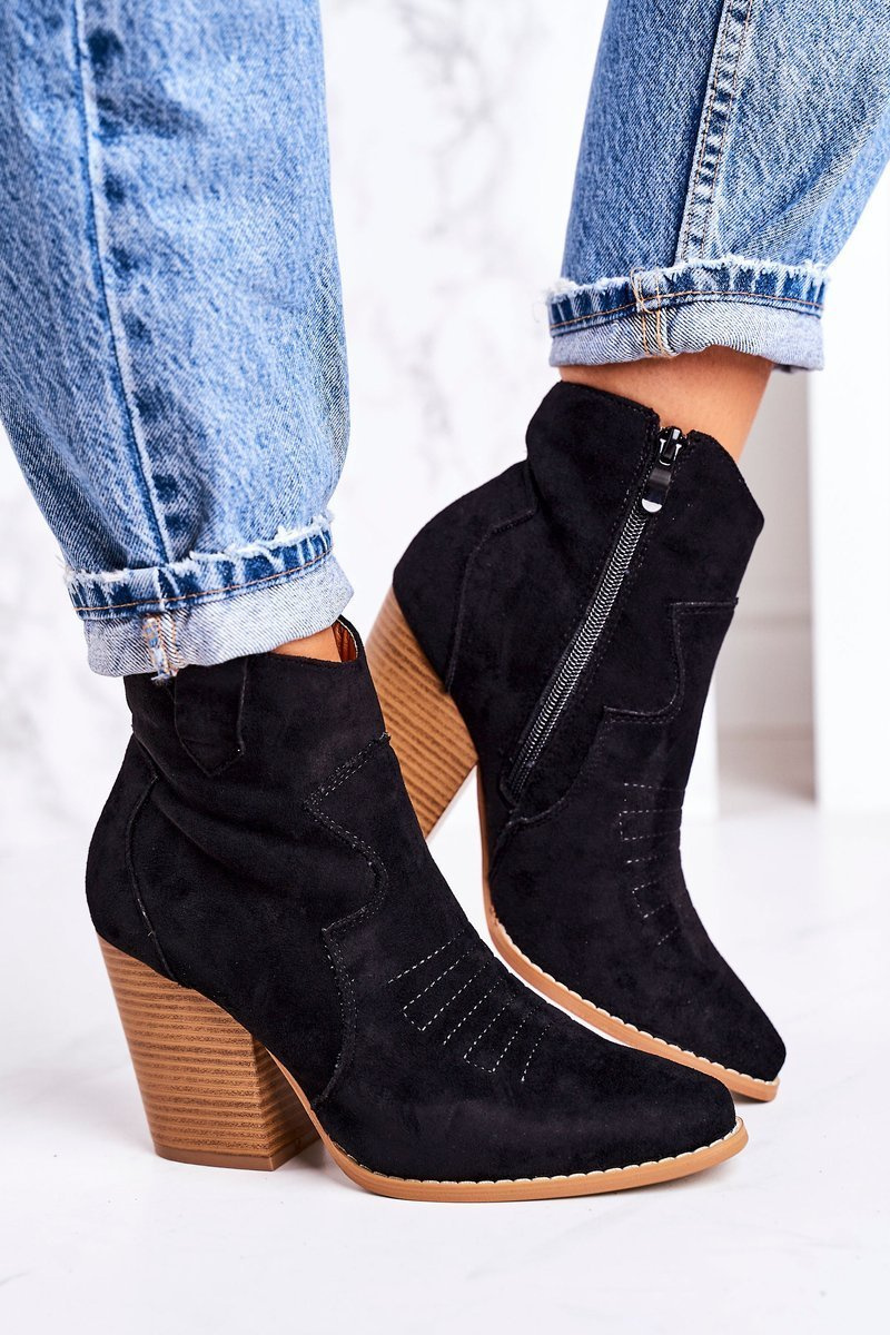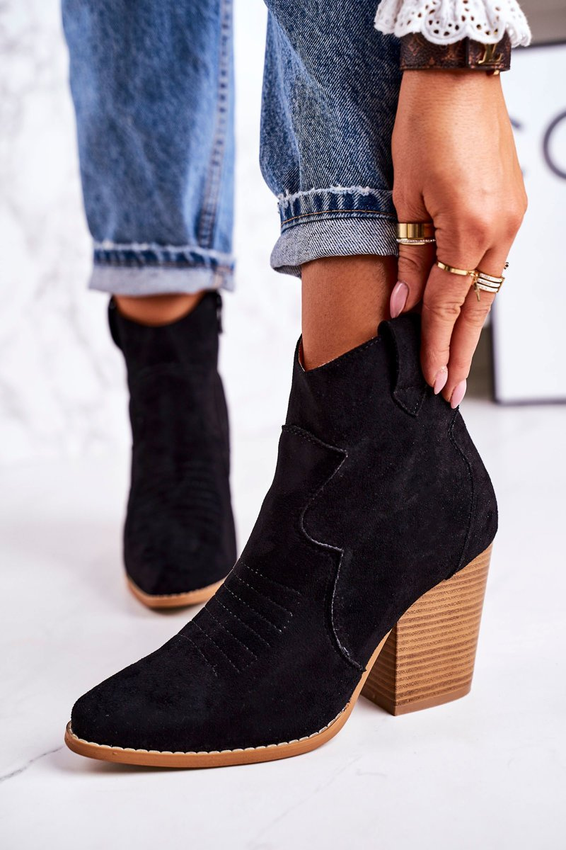 Damskie Kowbojskie Ocieplane Botki Na Słupku Czarne Margaret