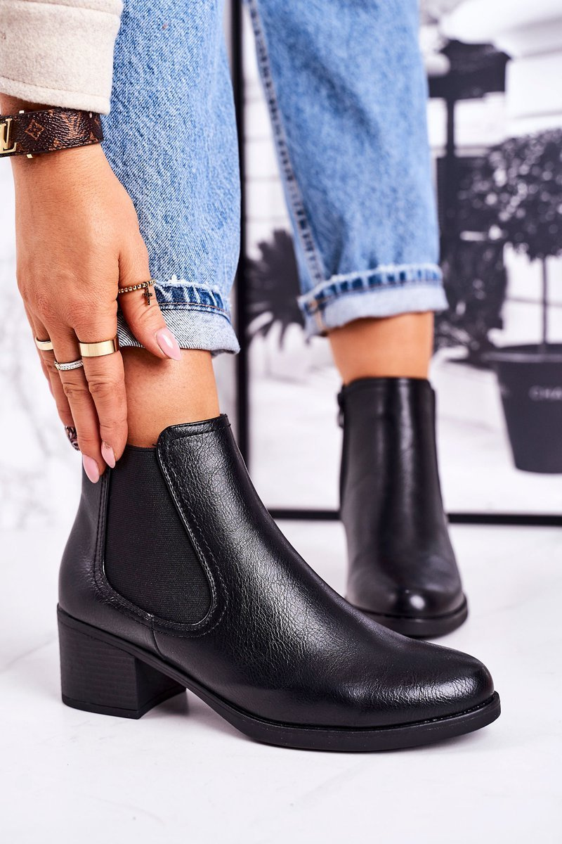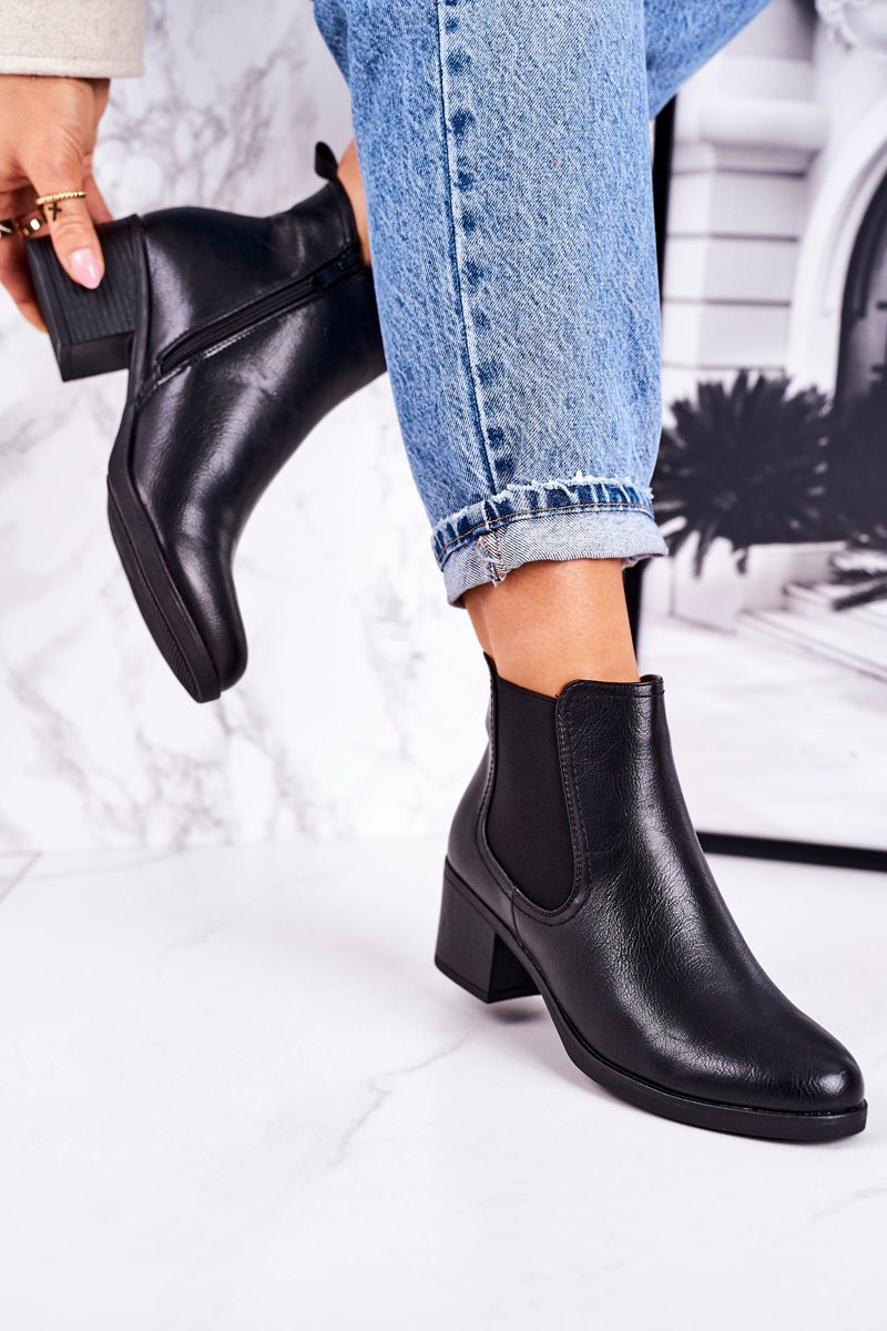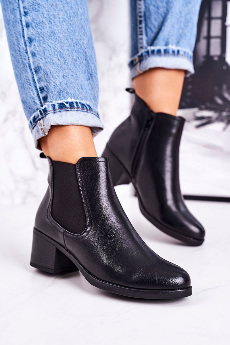 Damskie Ocieplane Botki Sztyblety Na Obcasie Czarne Forevermore