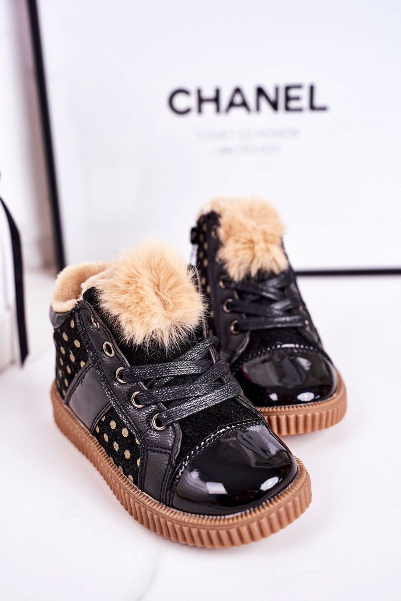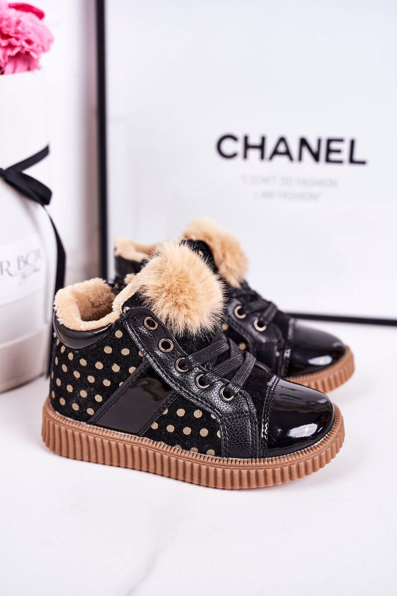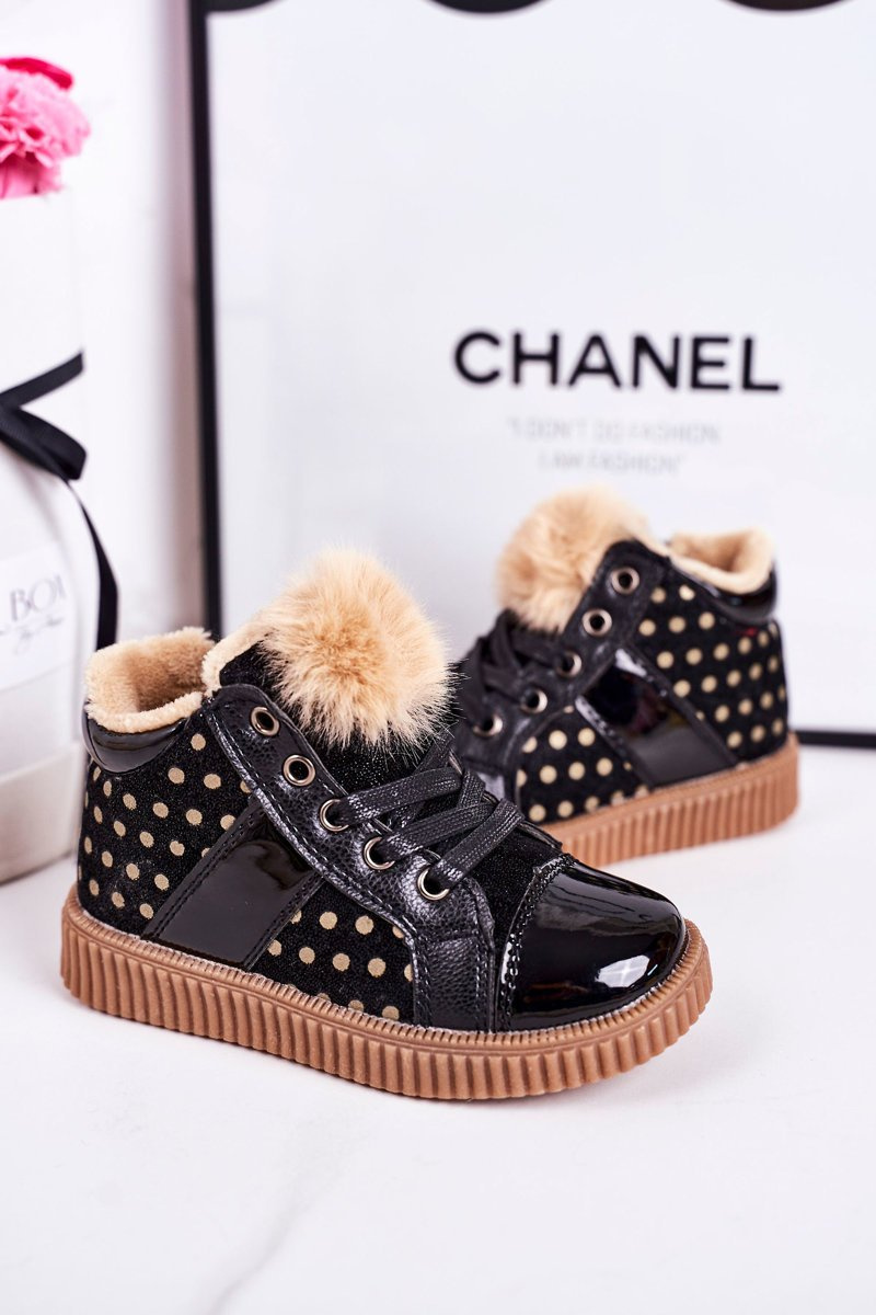 Dziecięce Ocieplane Botki Trampki W Groszki Czarne Anastasia