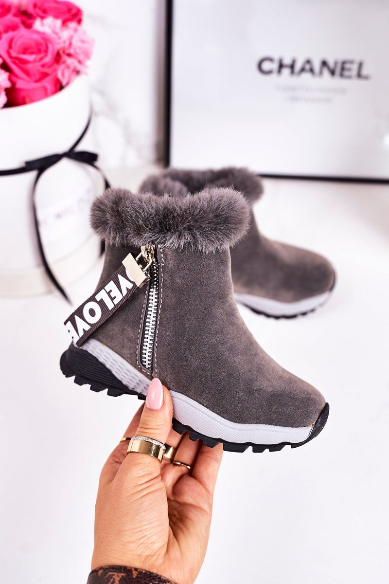 Dziecięce Ocieplane Botki Śniegowce Z Futerkiem Szare Love-Love