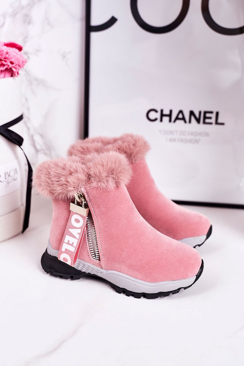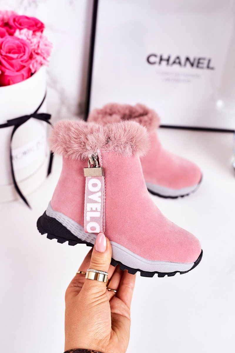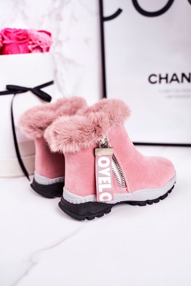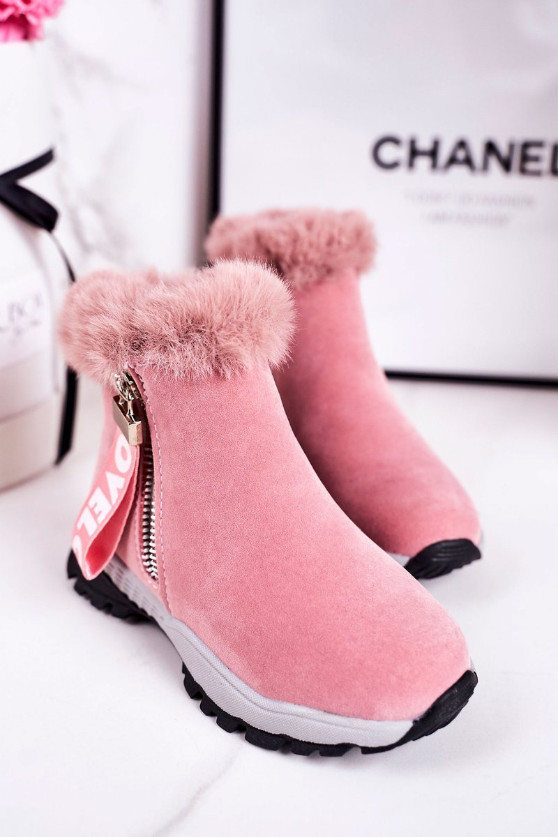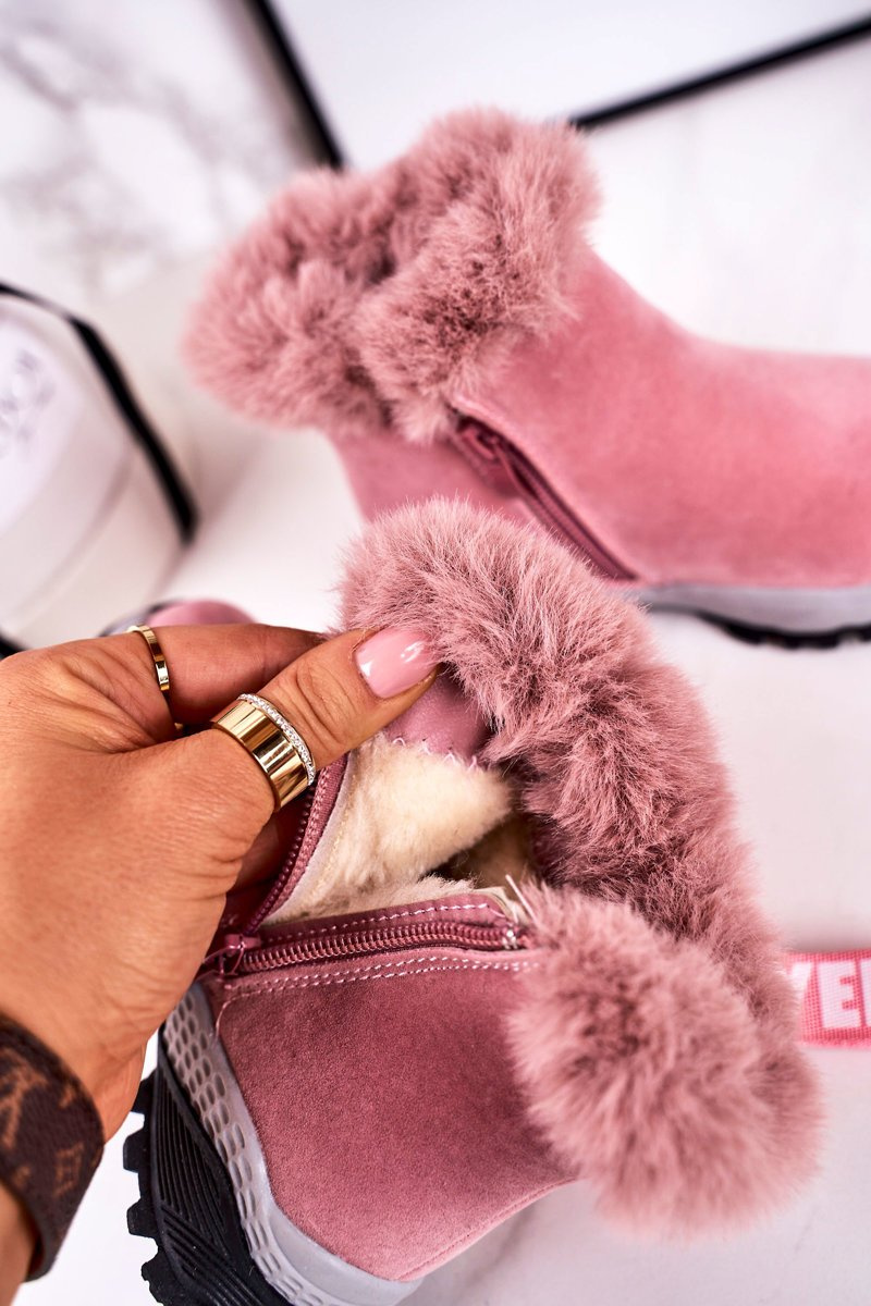 Dziecięce Ocieplane Botki Śniegowce Z Futerkiem Różowe Love-Love