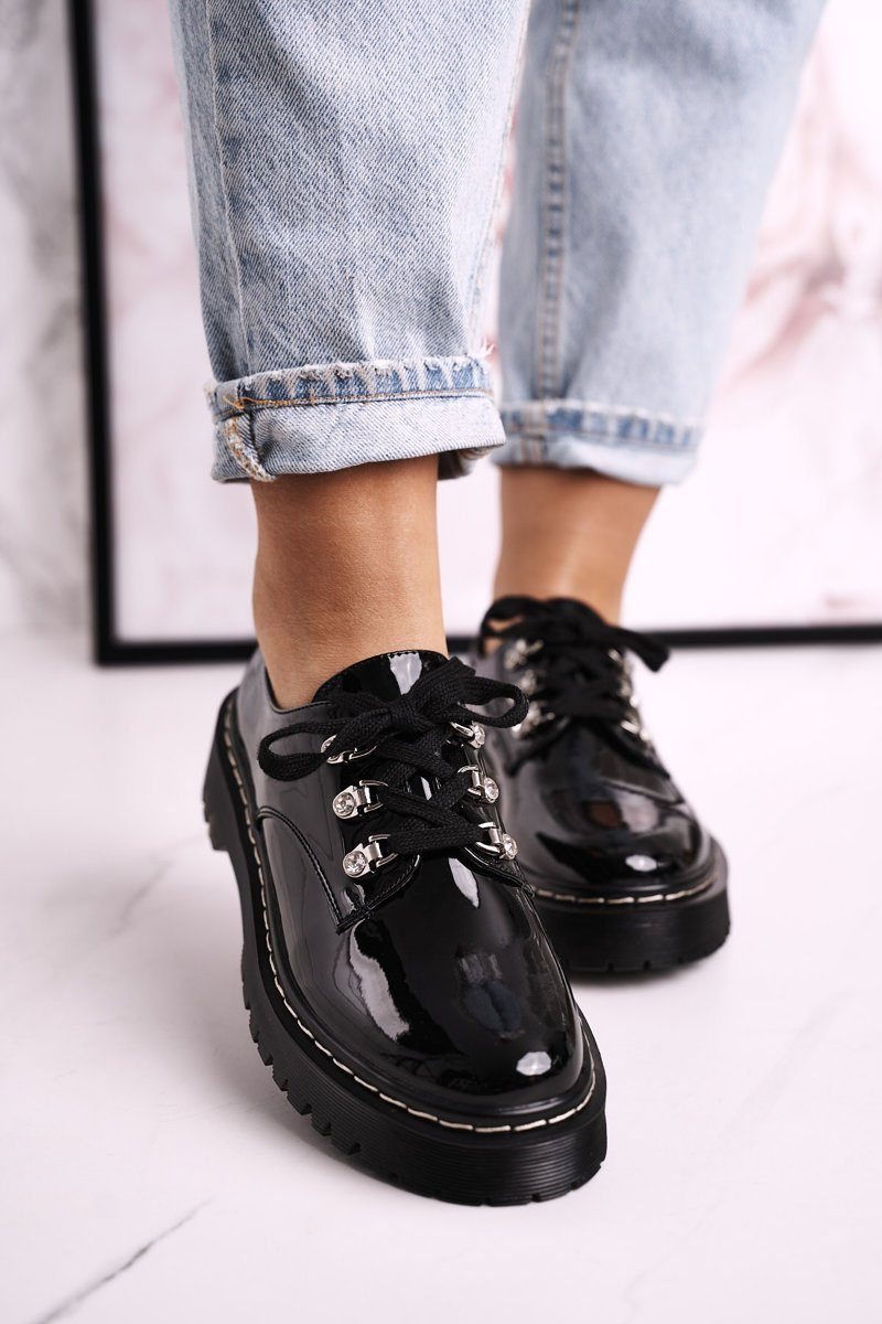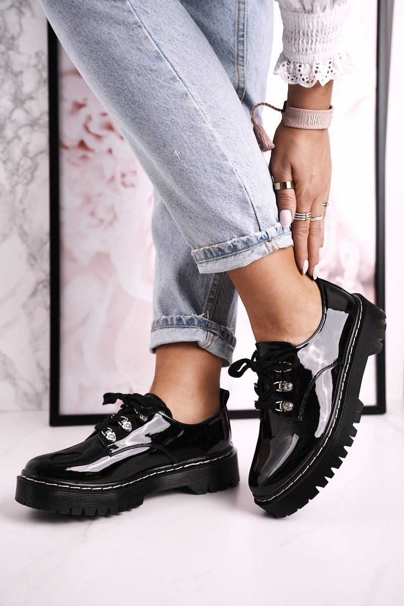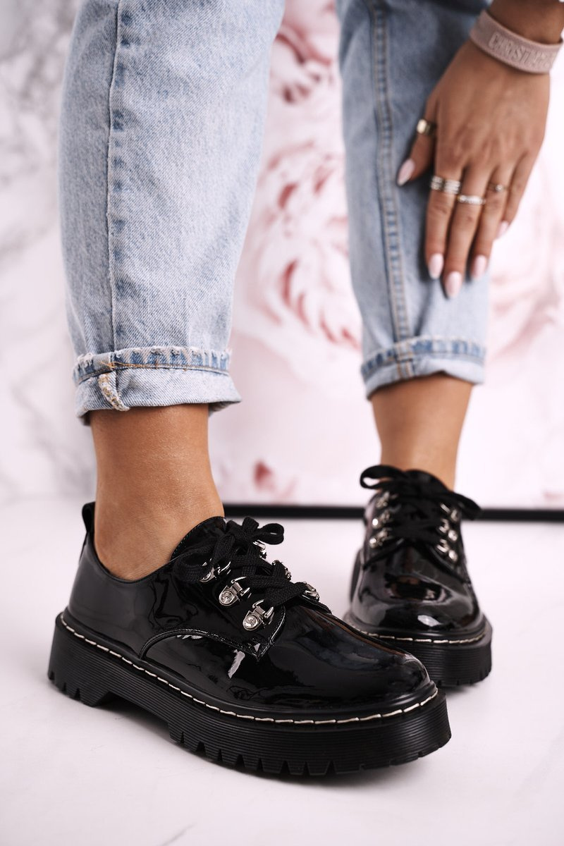 Damskie Półbuty Oxfordy Na Platformie S.Barski HX15 Lakierowane Czarne