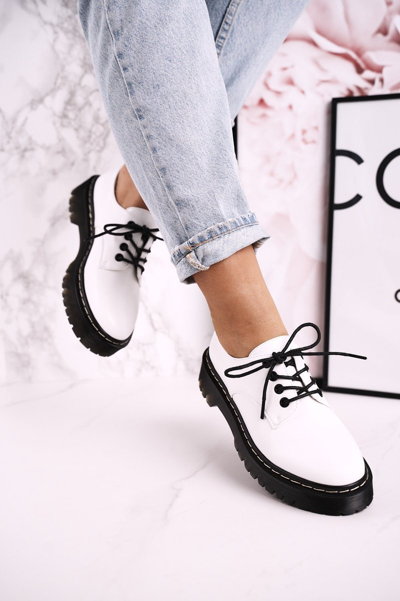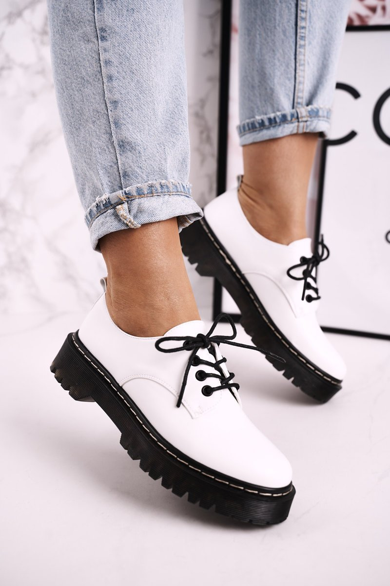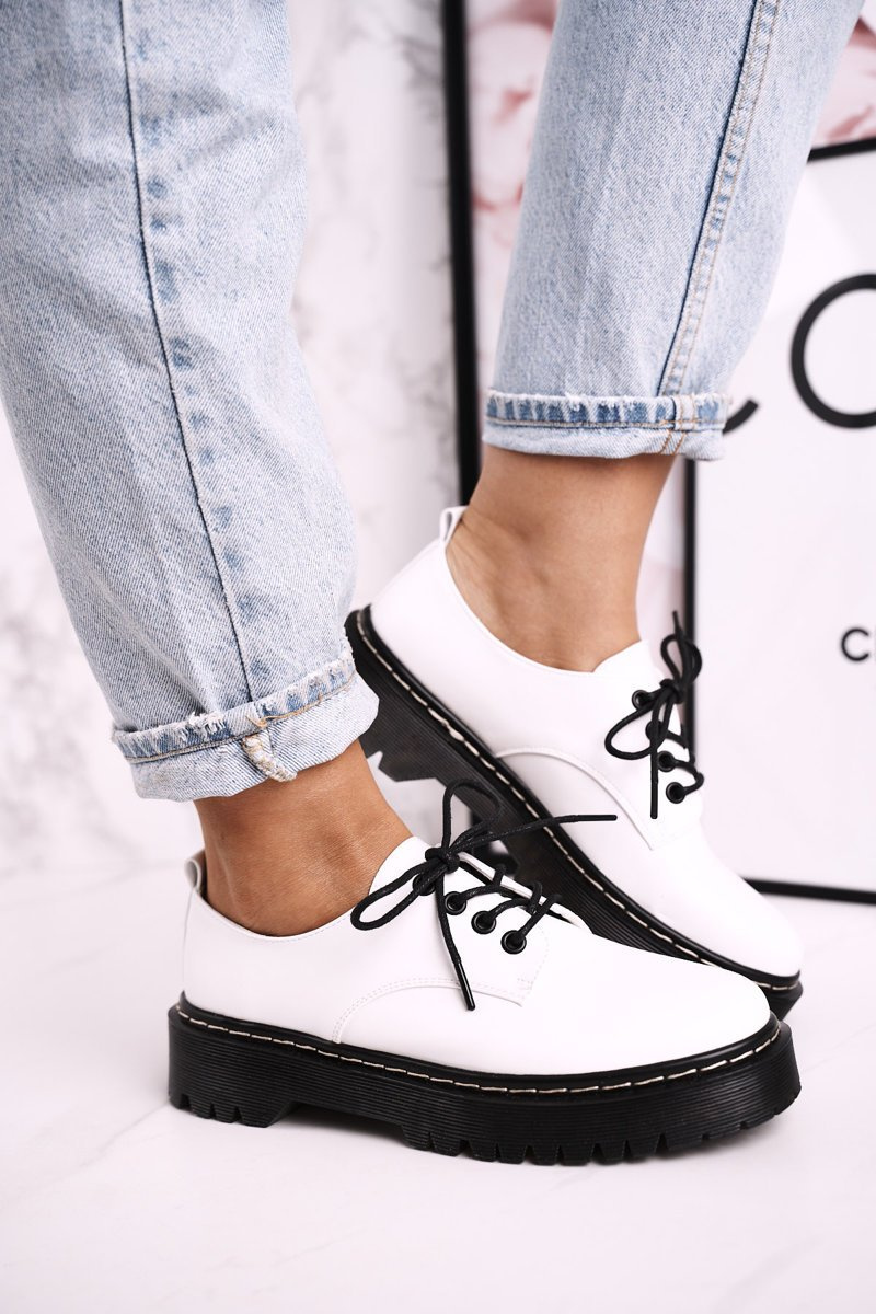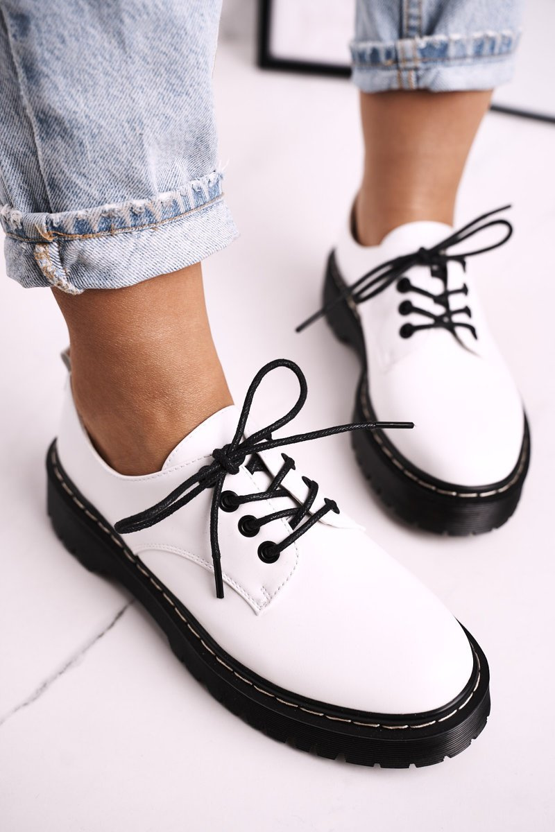 Damskie Klasyczne Półbuty Oxfordy Na Platformie S.Barski HX62 Białe