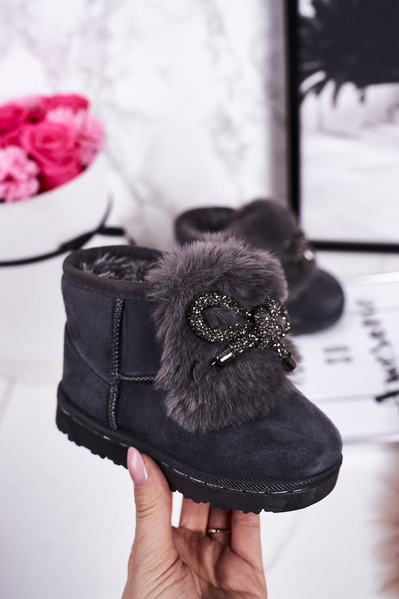 Dziecięce Śniegowce Ocieplane Futerkiem Zamszowe Szare Amelia