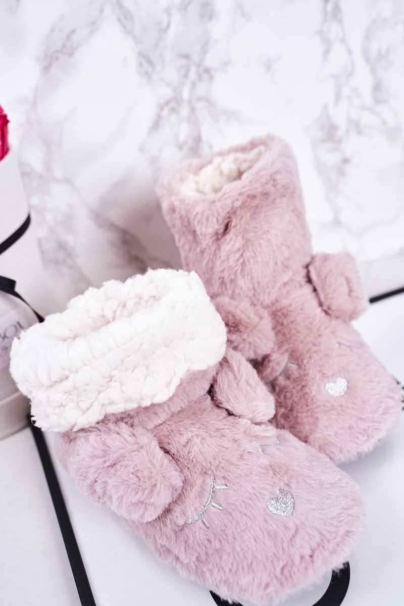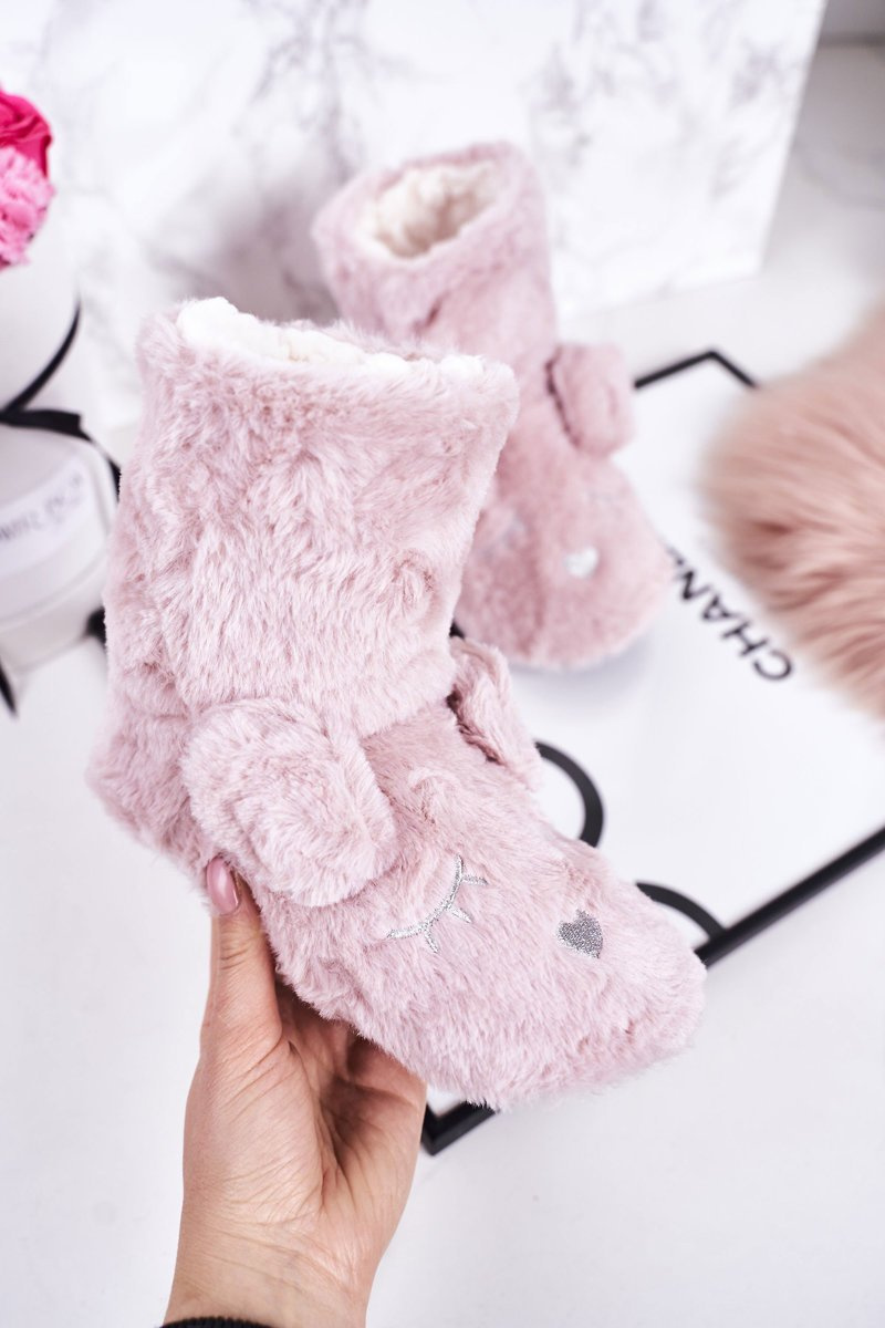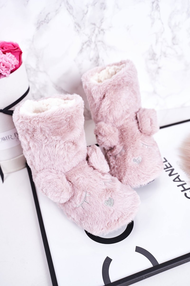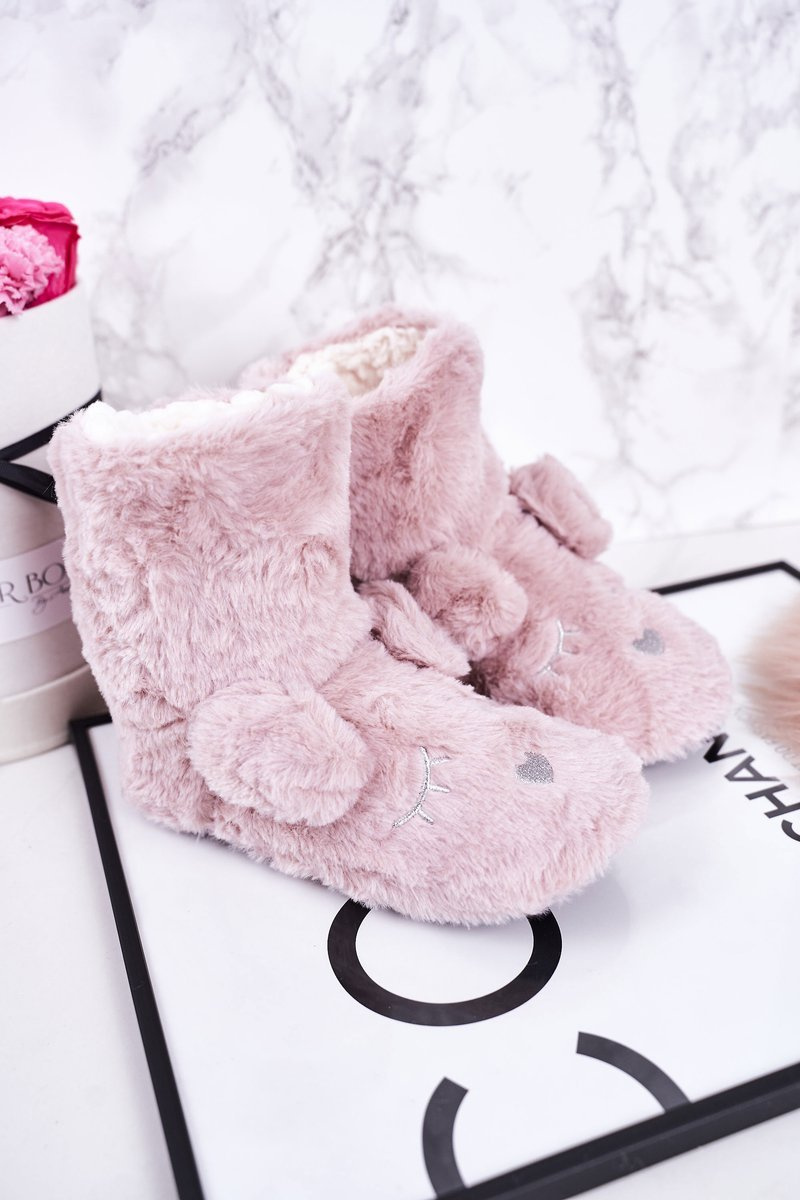 Dziecięce Papcie Ocieplane Kożuszkiem Pudrowy Róż Sleepyhead