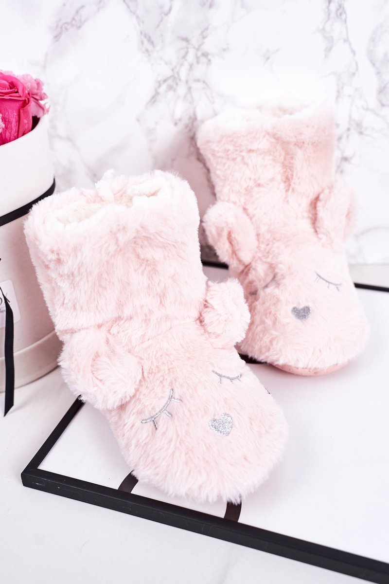 Dziecięce Papcie Ocieplane Kożuszkiem Jasny Róż Sleepyhead