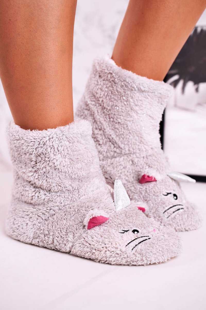 Damskie Papcie Ocieplane Kożuszkiem Szare Nyan Cat