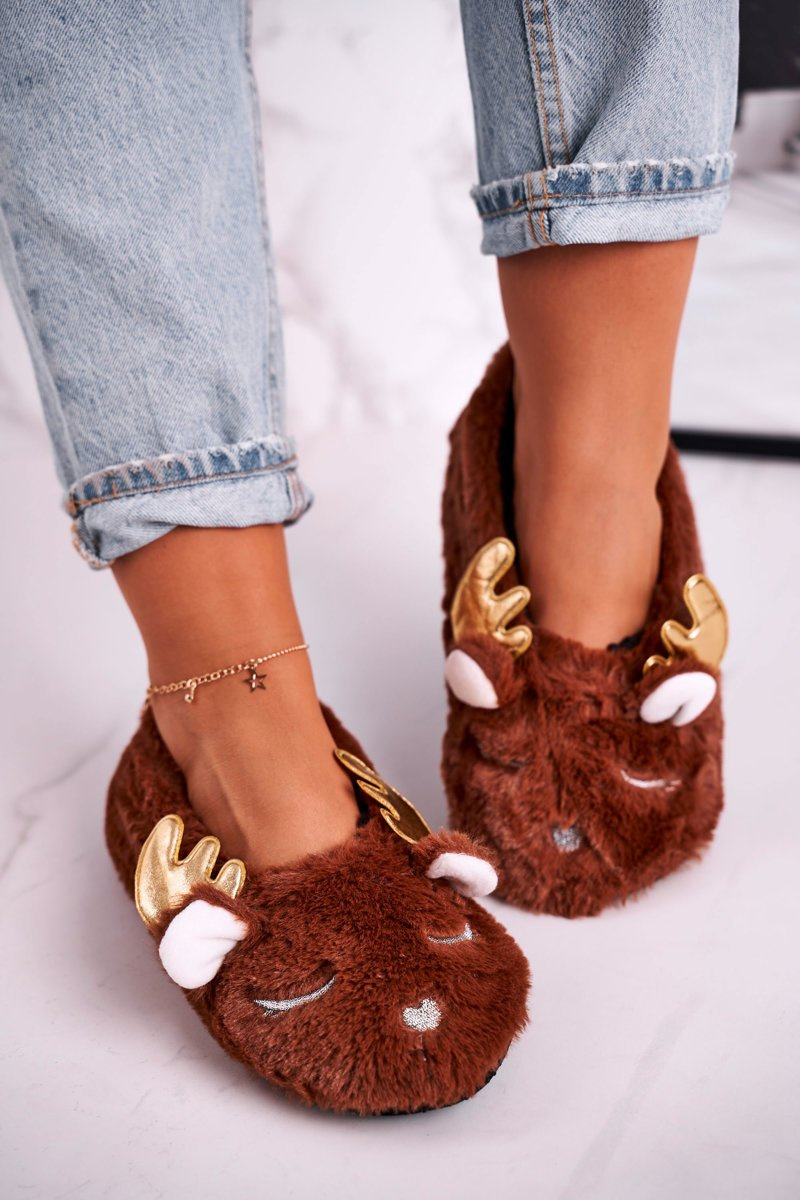 Świąteczne Ocieplane Futrzane Papcie Brązowe Jingle Bells