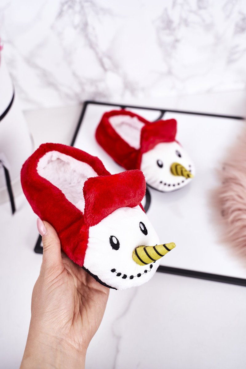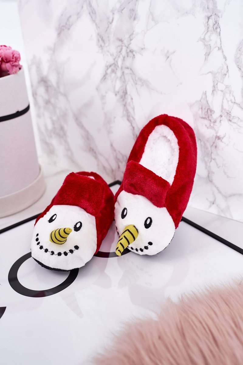 Świąteczne Dziecięce Papcie Z Bałwanem Czerwone Xmas