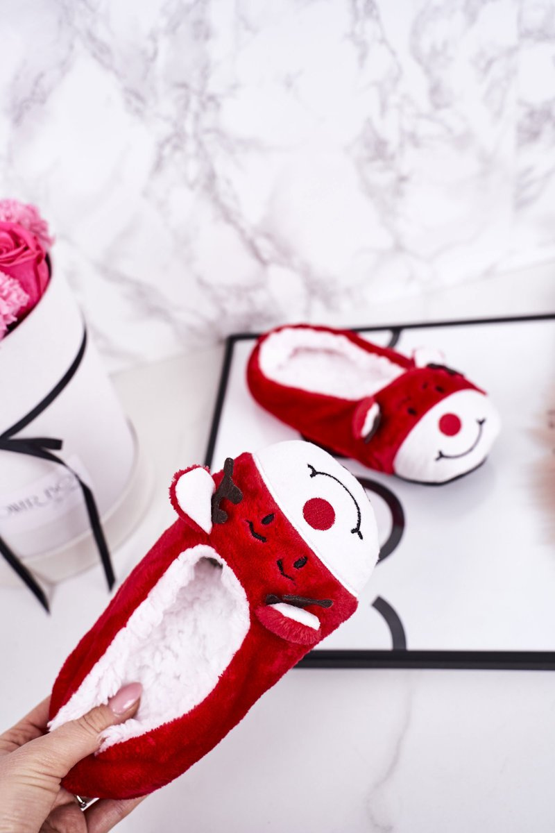 Świąteczne Dziecięce Papcie Z Reniferem1 Czerwone Xmas