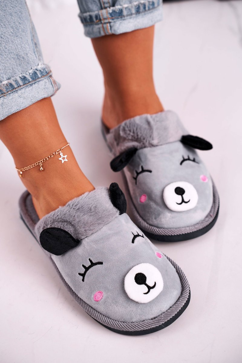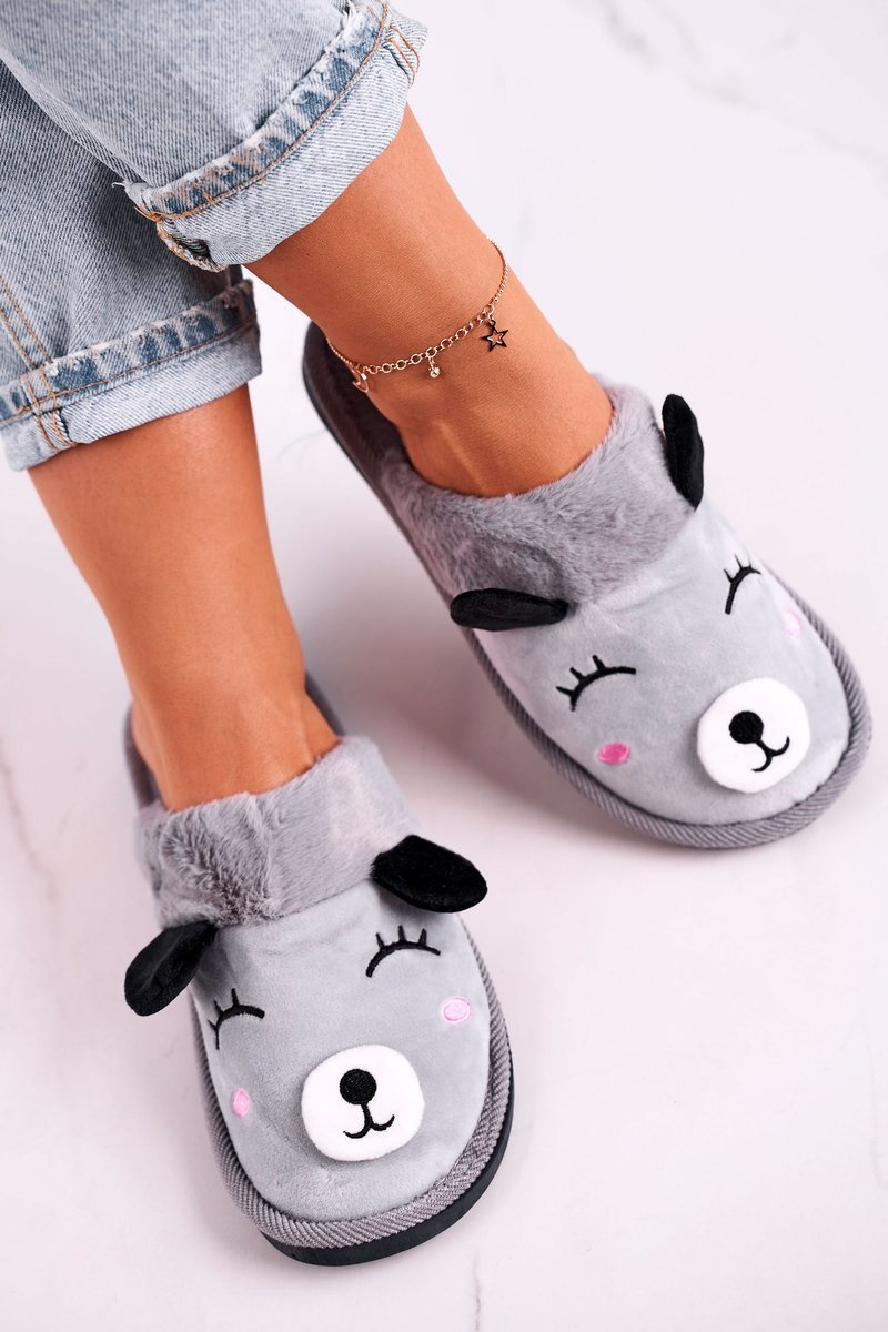 Damskie Welurowe Papcie Z Lamą Szare Ruddy