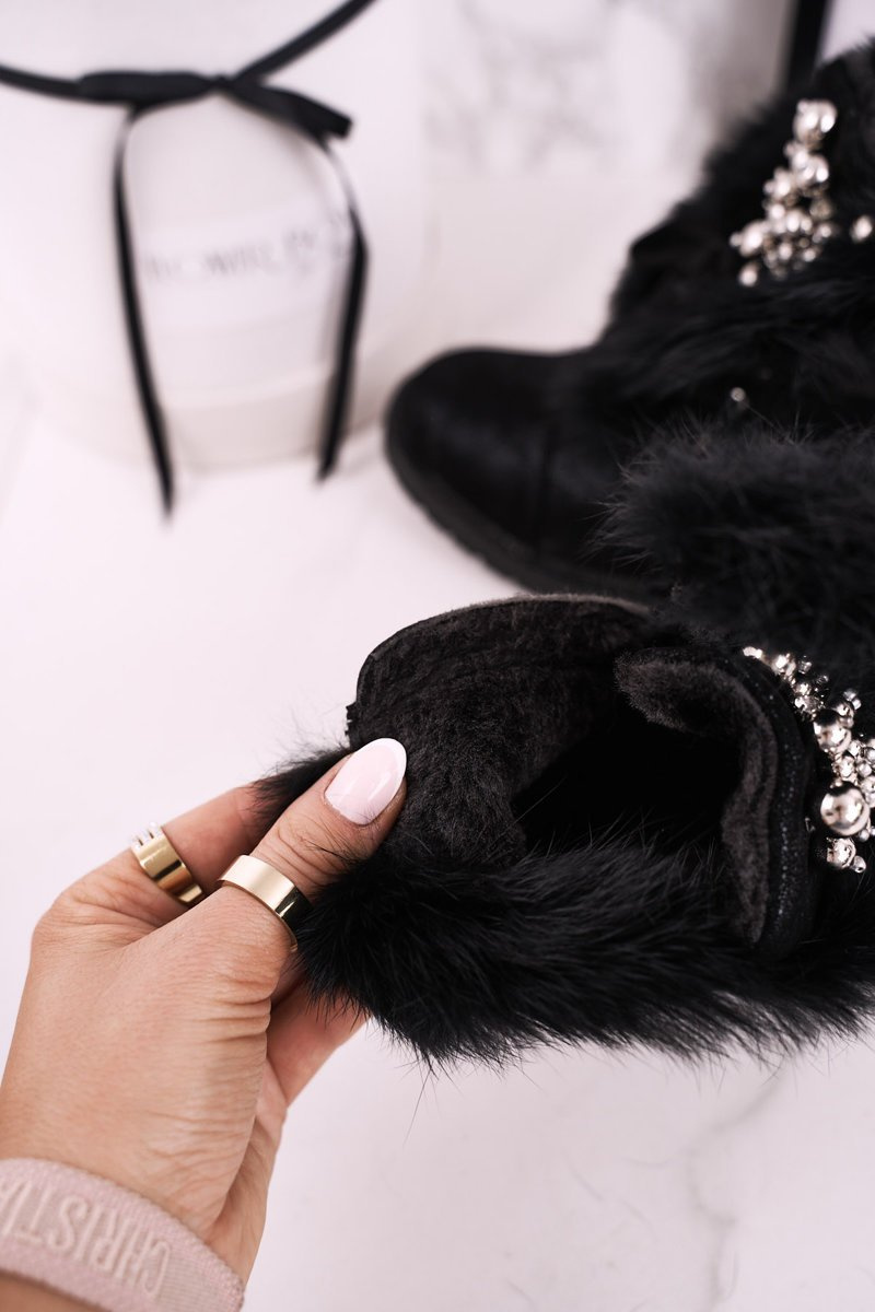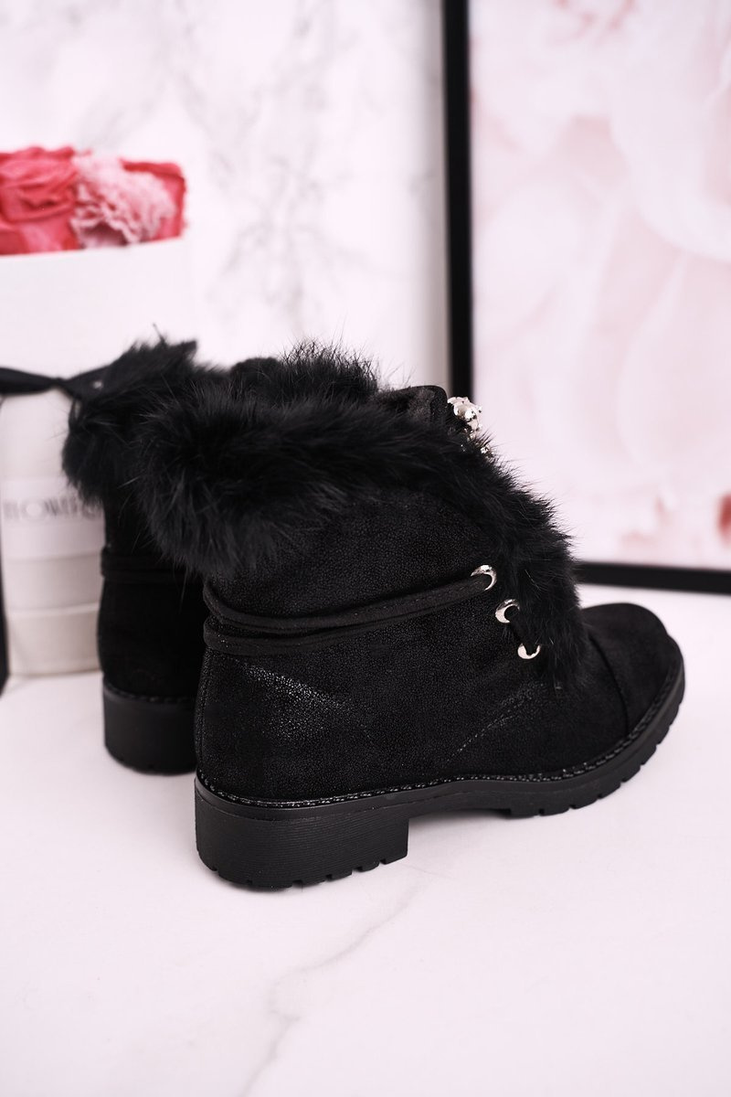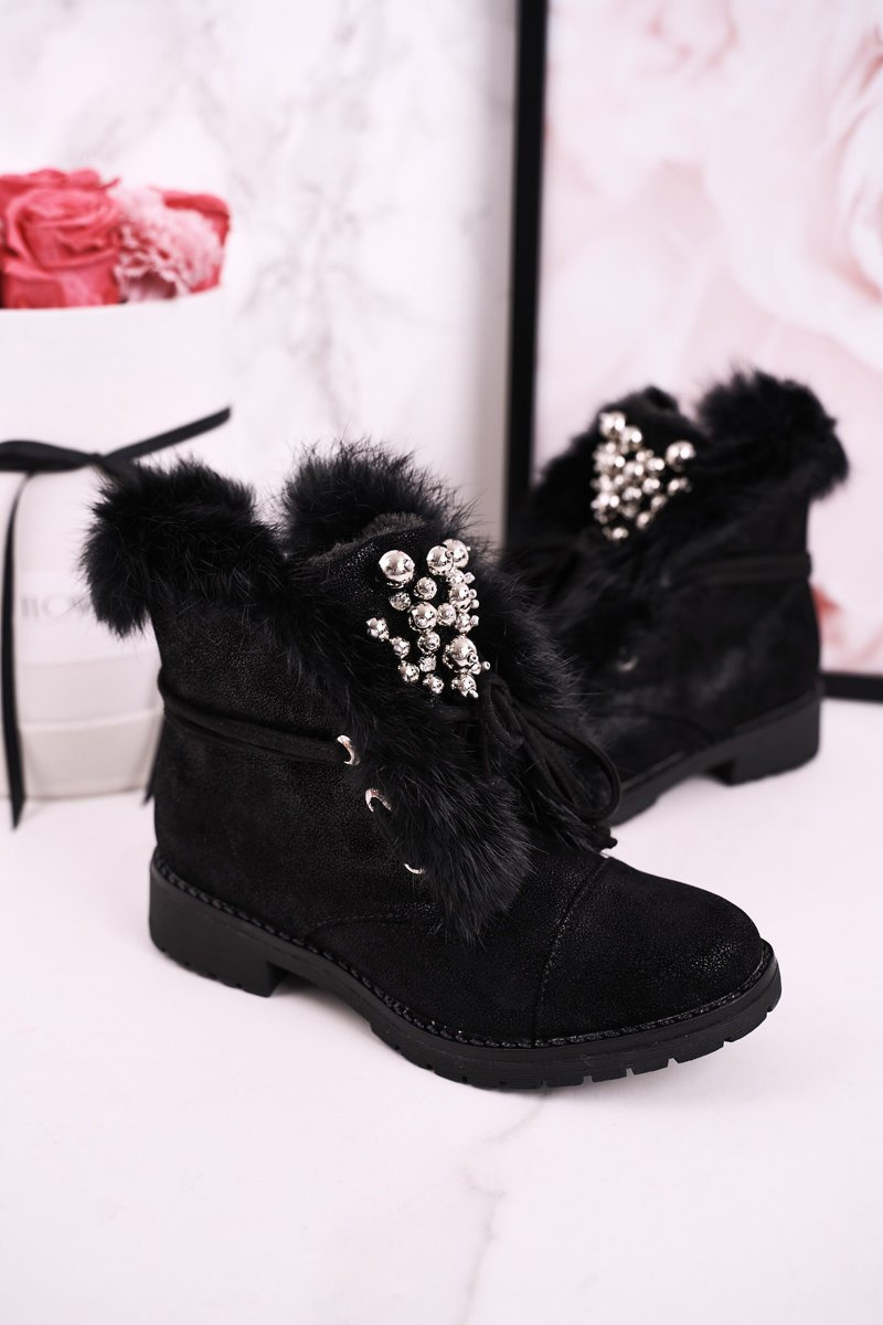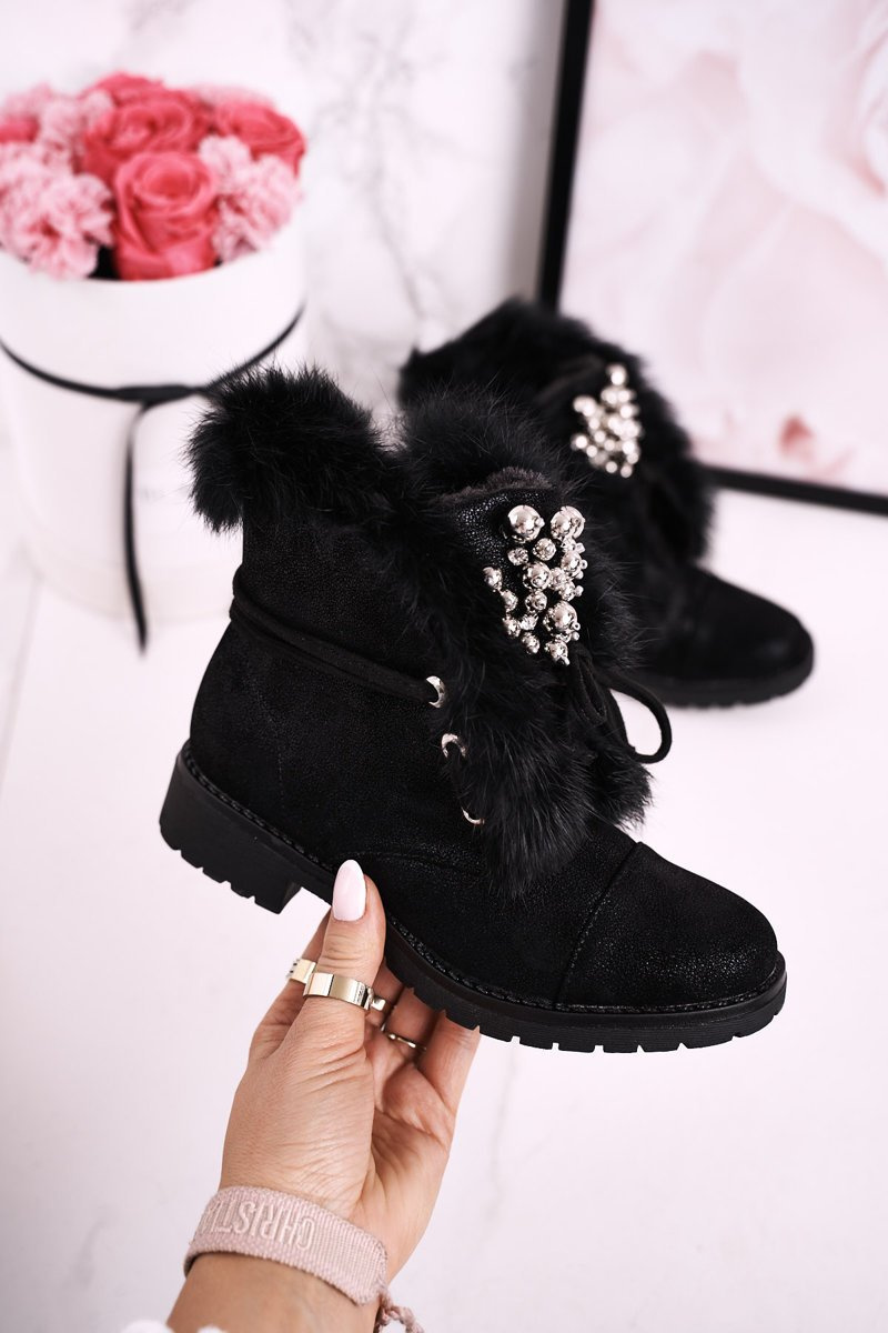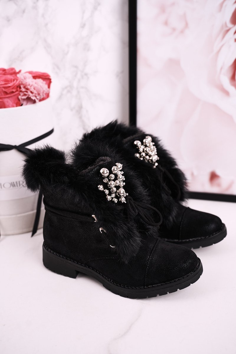 Dziecięce Ocieplane Botki Z Futerkiem Nubuk Czarne Ella