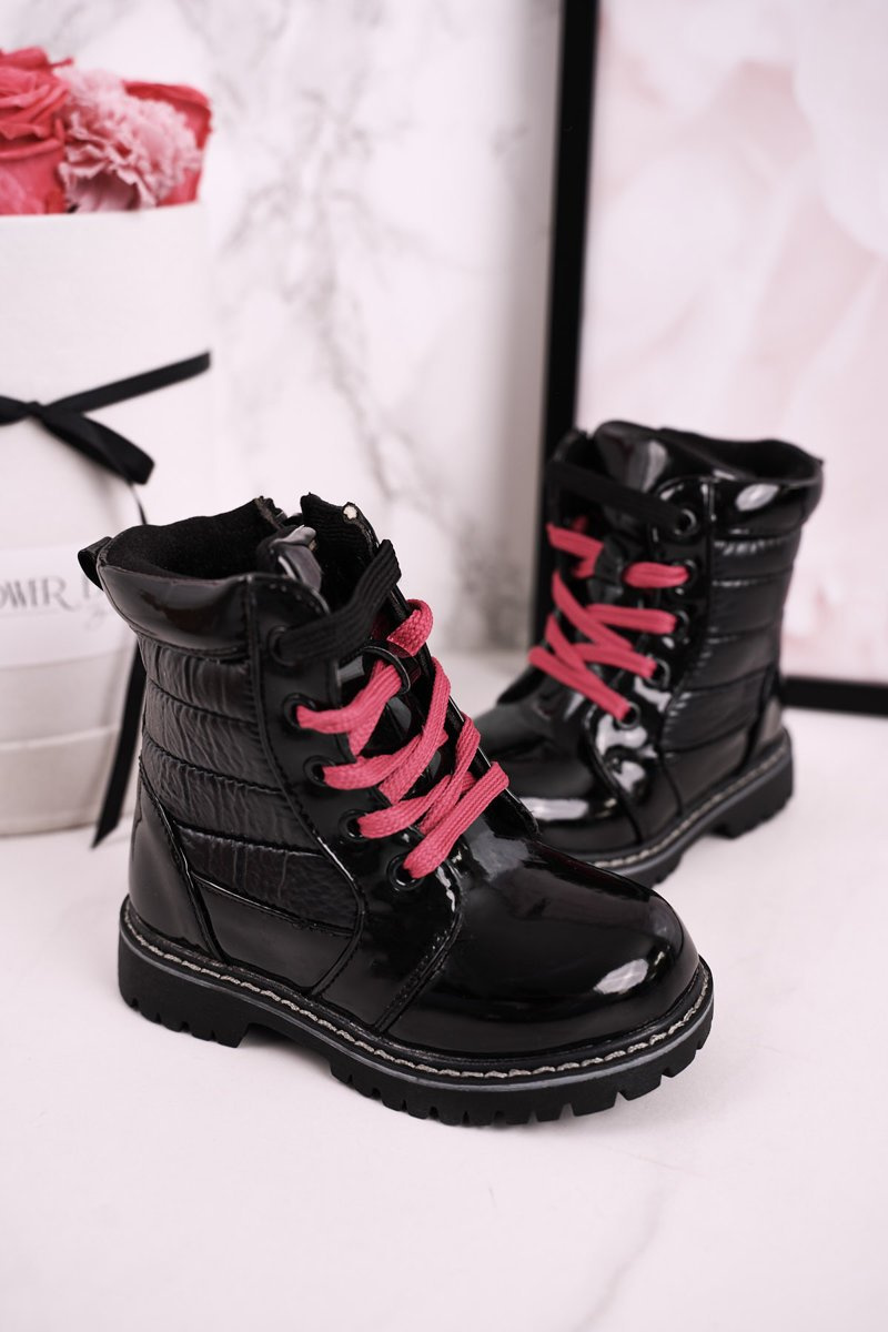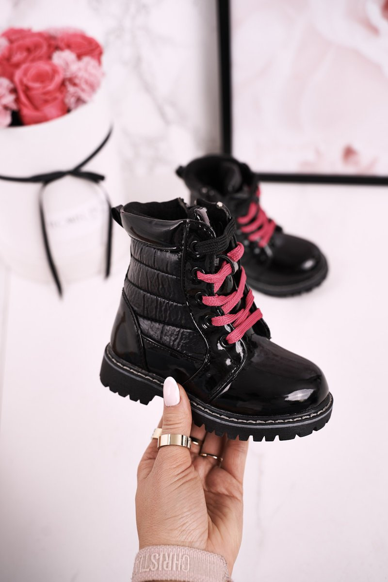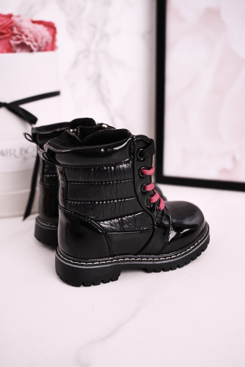 Dziecięce Botki Ocieplone Futerkiem Z Pikowaniem Czarne Pinkie