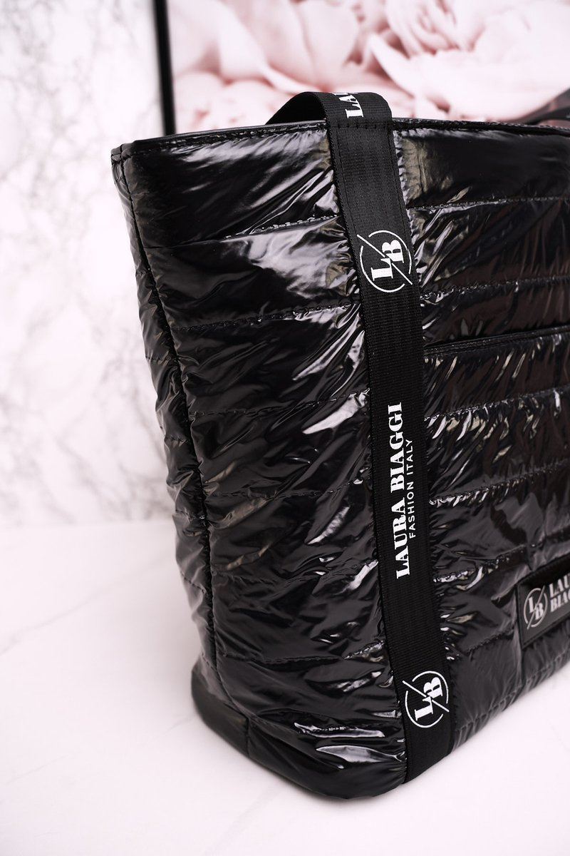 Duża Torba Shopper LAURA BIAGGI Czarna Białe Logo