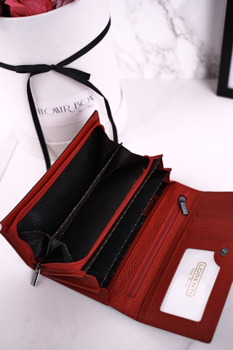 Średni Skórzany Portfel Damski LORENTI Lakierowany Czerwony