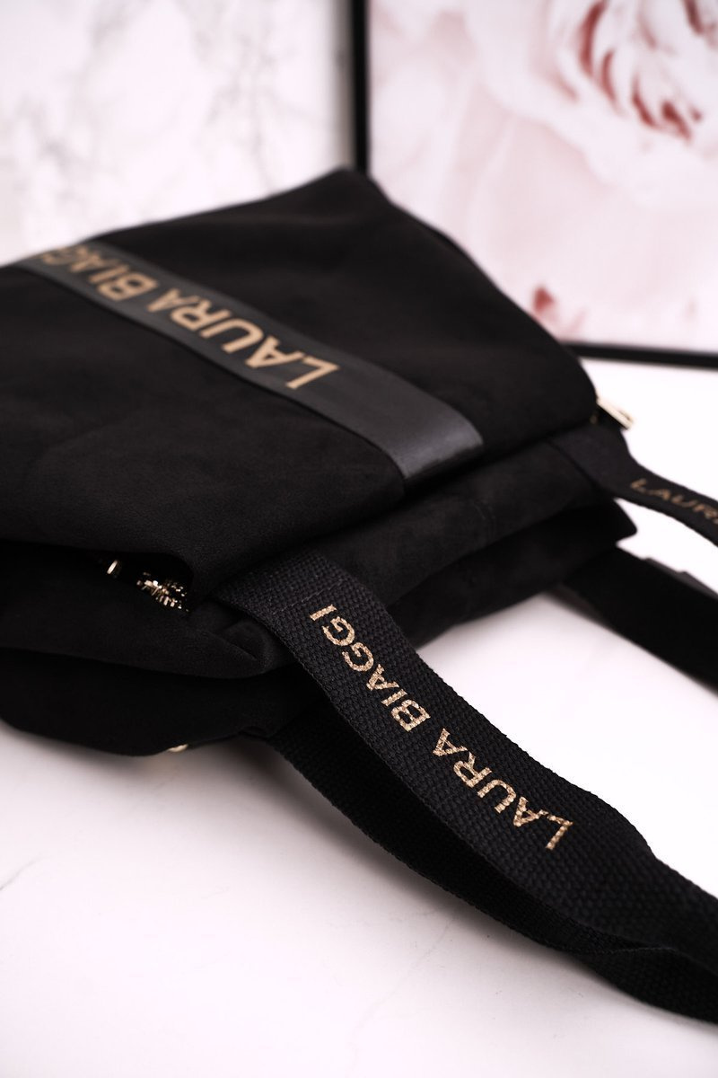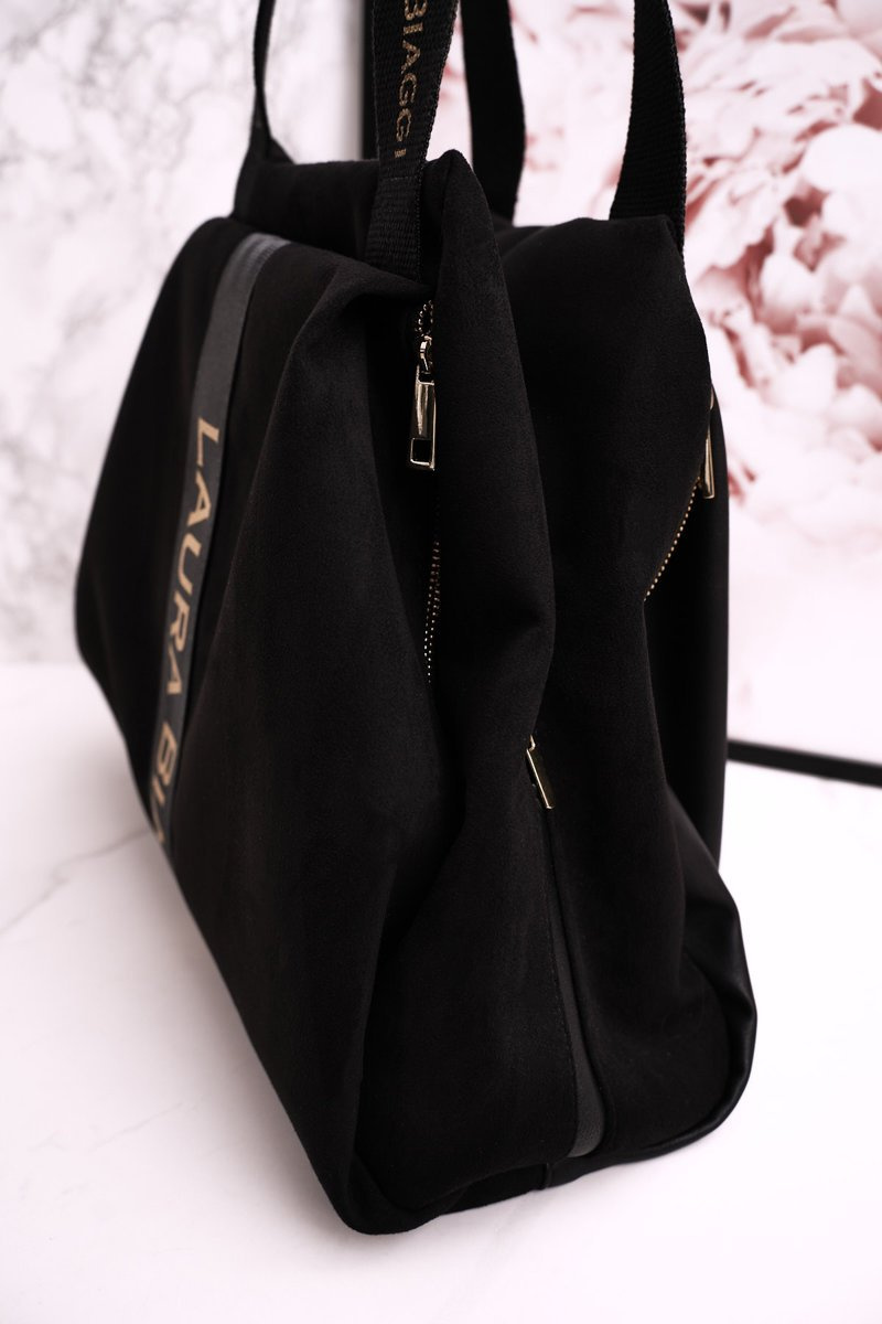 Torba Shopper Na Ramię LAURA BIAGGI Zamszowa Czarna