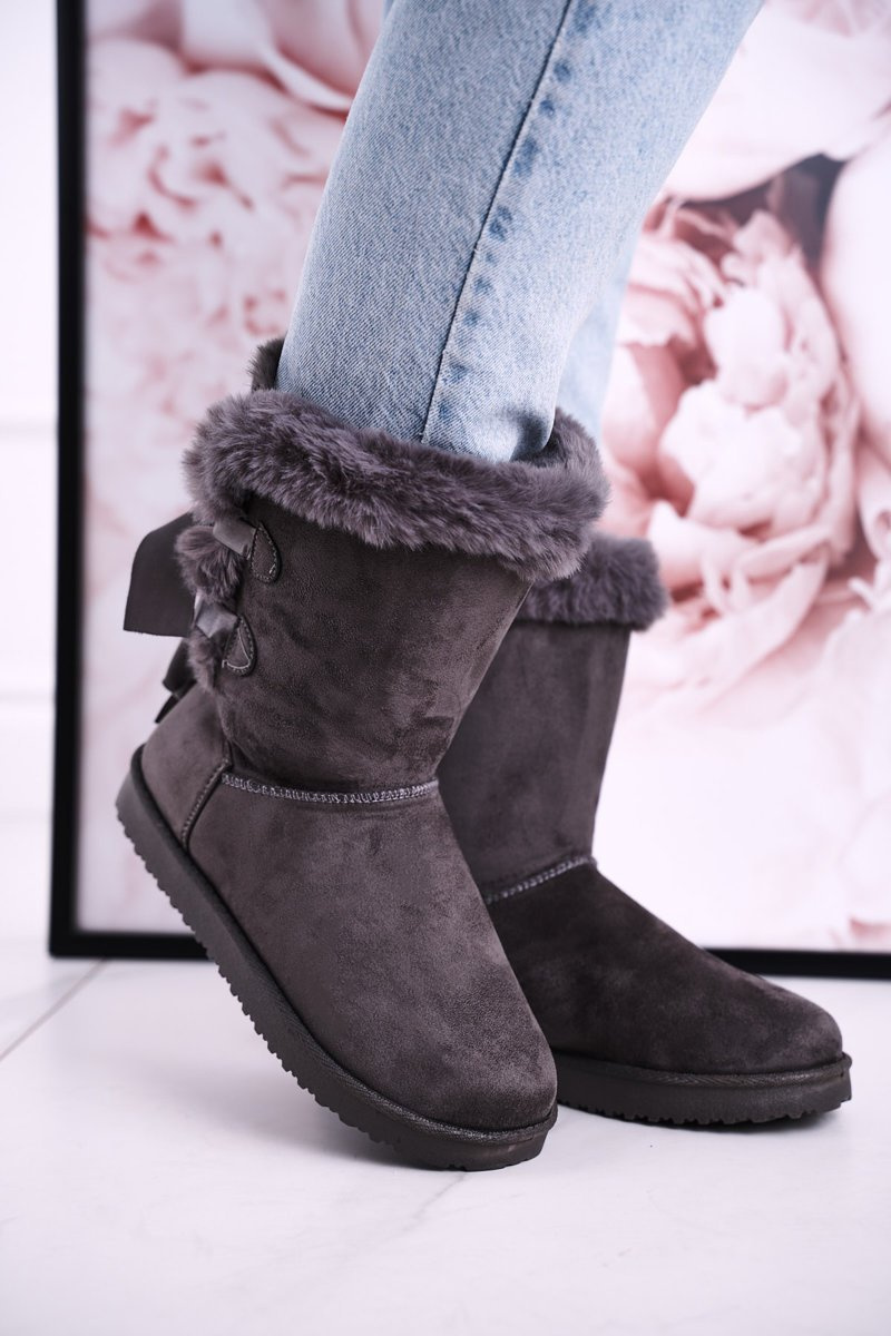 Damskie Śniegowce Ze Wstążką Ocieplone Futerkiem Szare Kaylee
