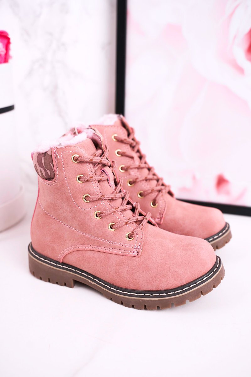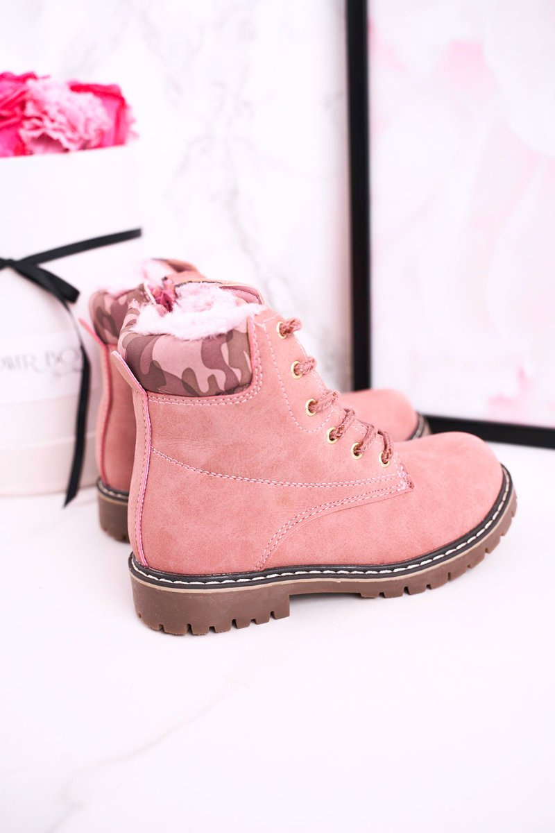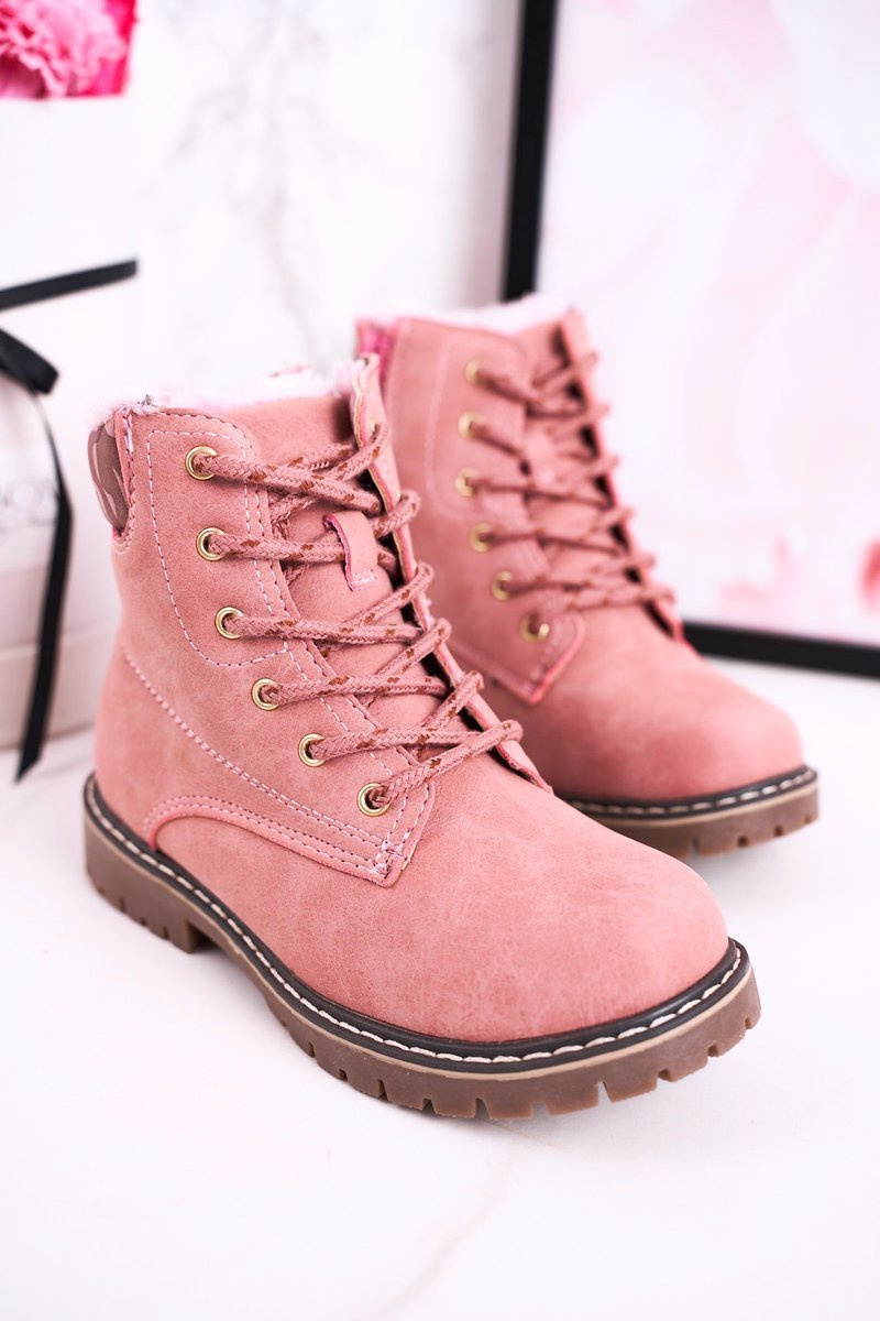Dziecięce Botki Traperki Ocieplone Futerkiem Różowe London