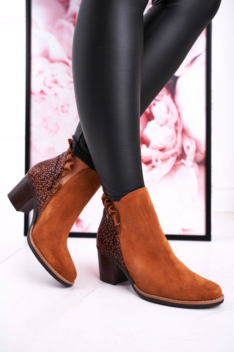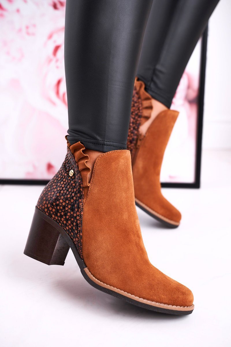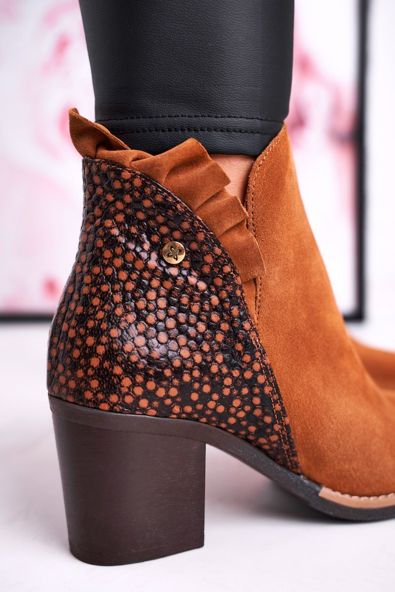 Damskie Skórzane Botki Na Słupku Maciejka Rude 04833-43
