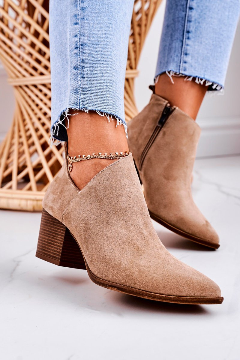 Damskie Botki Z Wycięciem Na Słupku Zamszowe Beżowe Lawrence