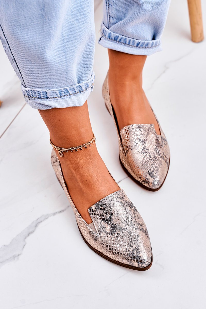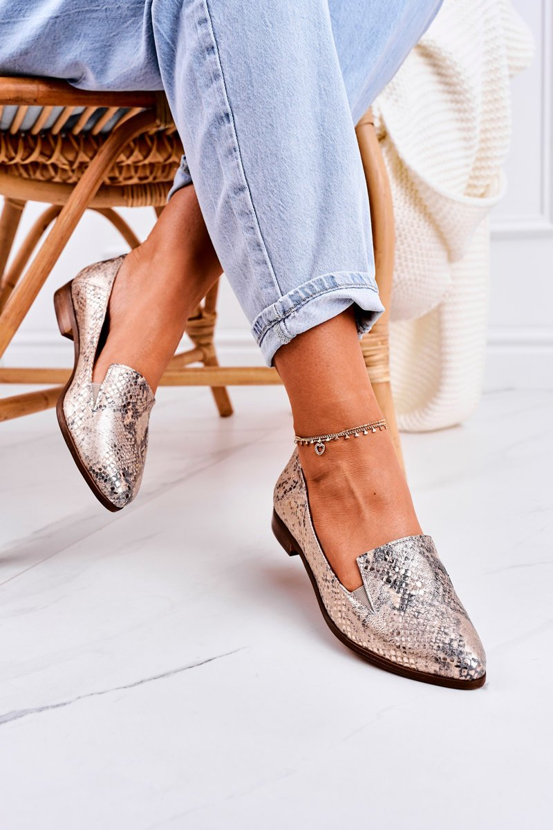 Damskie Skórzane Mokasyny Wzór Zwierzęcy Złote Scarlett