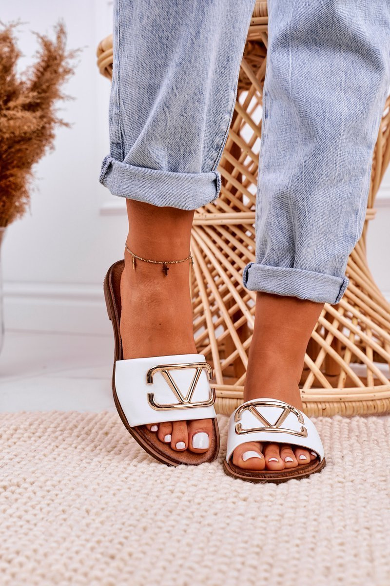 Damskie Klasyczne Skórzane Klapki Białe Evie