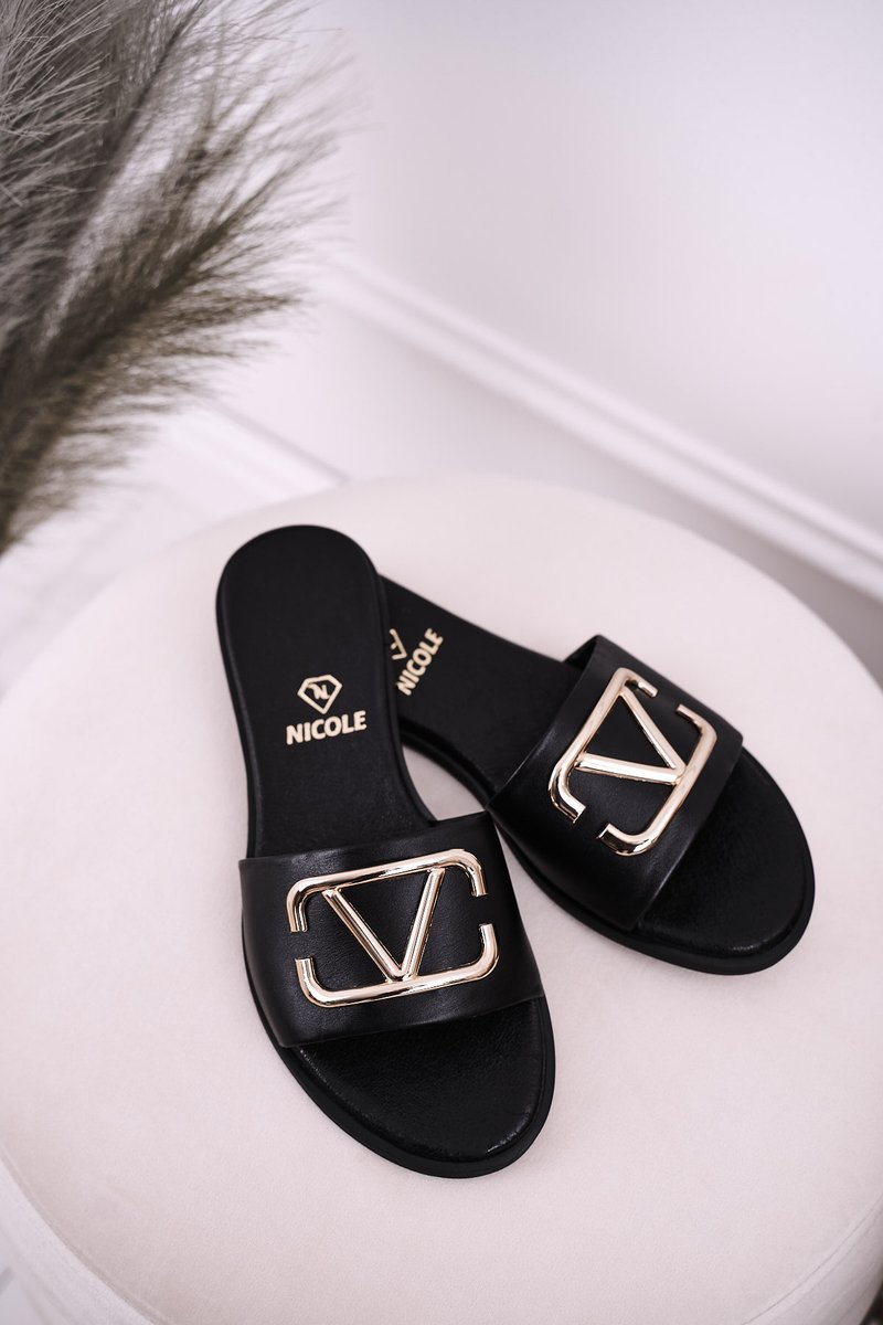 Damskie Klasyczne Skórzane Klapki Czarne Evie
