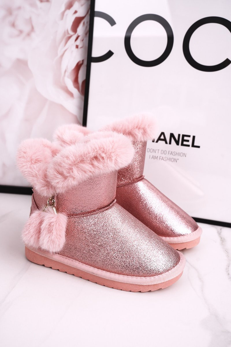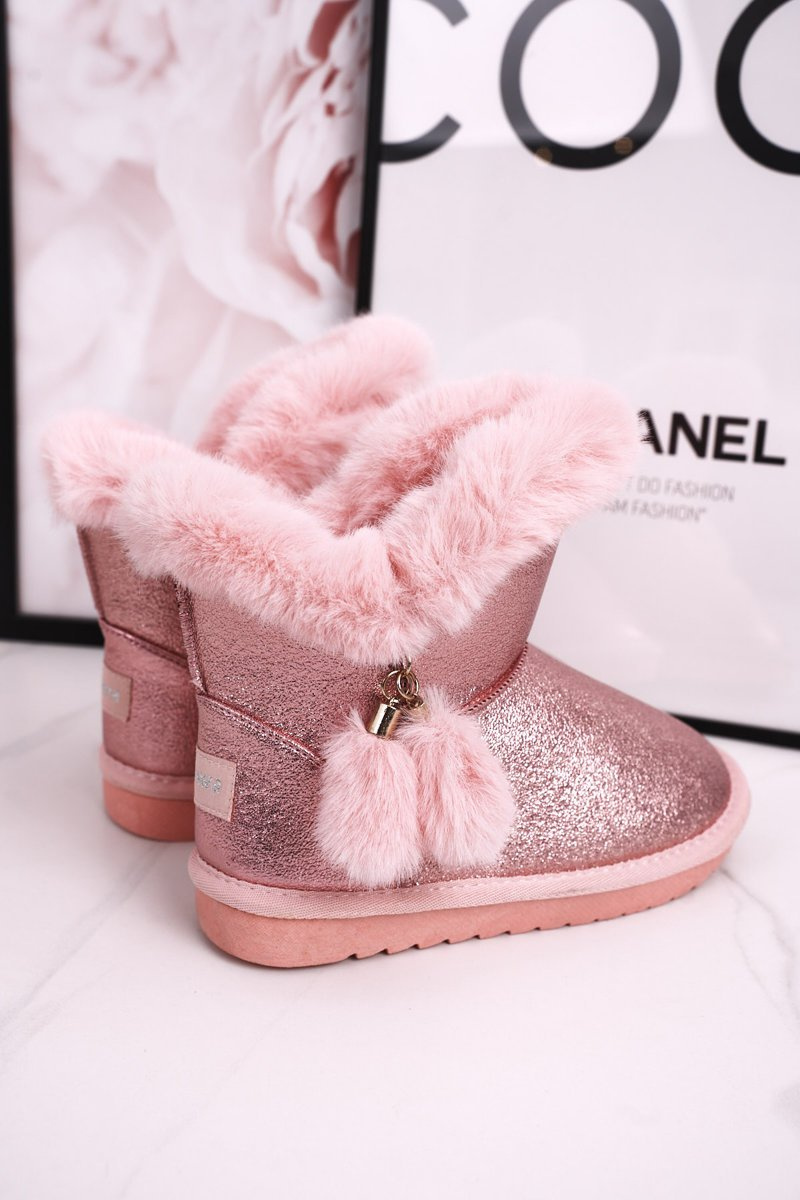 Dziecięce Ocieplane Śniegowce Z Pomponami Różowe Clara