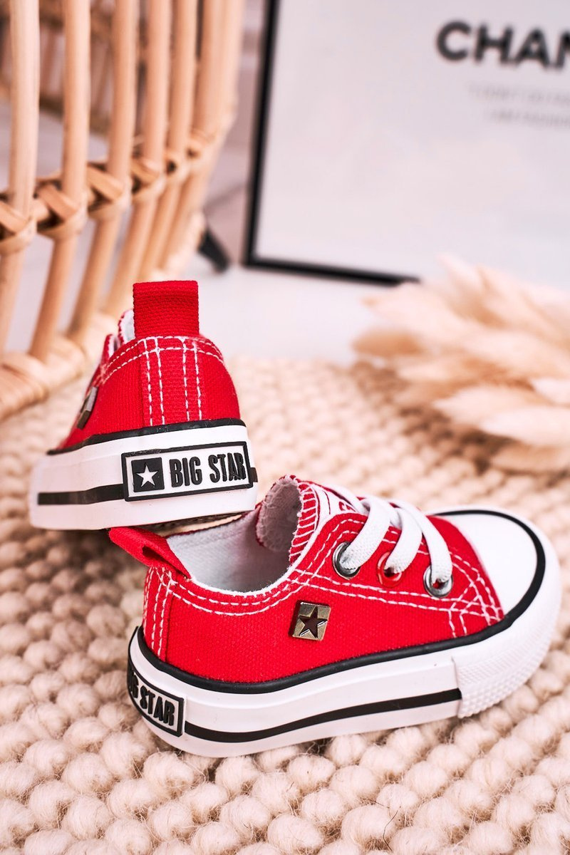 Klasyczne trampki od firmy BIG STAR. Trampki wykonane są z wysokiej jakości materiału, który jest odporny na działanie czynników zewnętrznych. Trampki dobrze dopasowują się do kształtu stopy oraz posiadają funkcjonalną, antypoślizgową podeszwę. Ponadczasowy wzór dostępny w wielu kolorach. Koniecznie sprawdź całą naszą kolekcję butów BIG STAR. Rozmiary 17-21 posiadają trzy oczka do sznurówek, natomiast rozmiary 22-27 posiadają 4 oczka. Przy wyborze rozmiaru prosimy sugerować się tabelą rozmiarów.