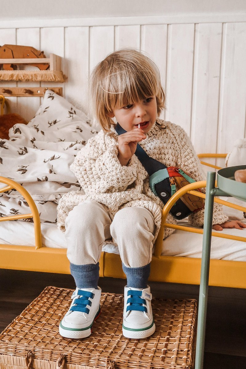 Dziecięce wysokie trampki ze ściągaczem. Trampki wykonane są z wysokiej jakości eko skóry. Posiadają antypoślizgową podeszwę oraz miękką, skórzaną wkładkę. Koniecznie sprawdź całą naszą kolekcję dziecięcych trampek. Przy wyborze rozmiaru prosimy sugerować się tabelą rozmiarów.