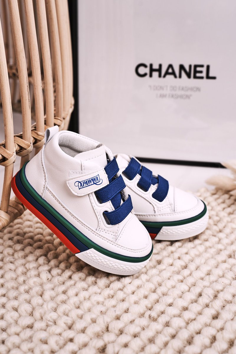 Dziecięce Wysokie Trampki Ze Ściągaczem Biało Granatowe Baxter