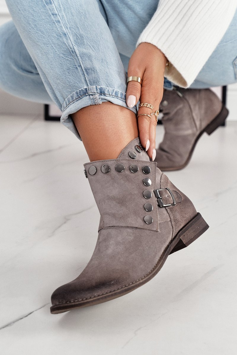Damskie Zamszowe Botki Z Klamrą Exquisite 1198 Cappuccino