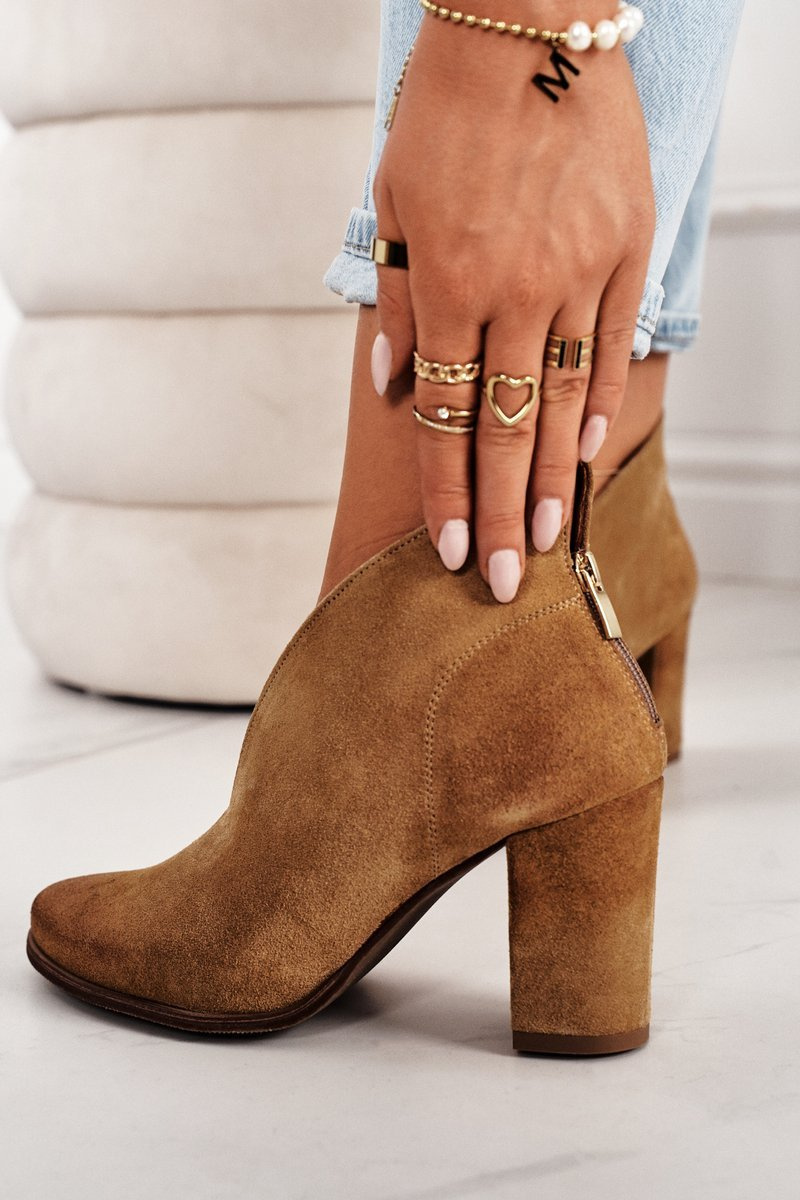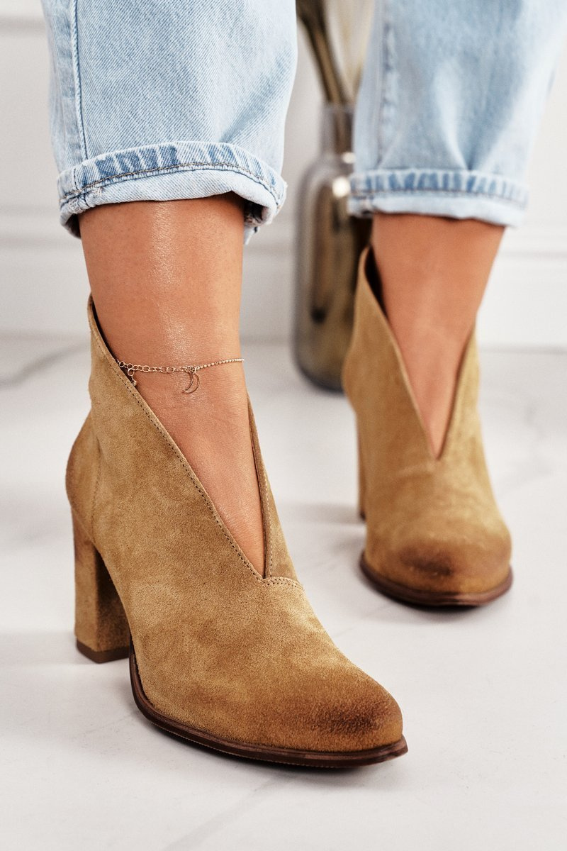 Zamszowe Botki Na Słupku Z Wycięciem Exquisite 1231 Rude