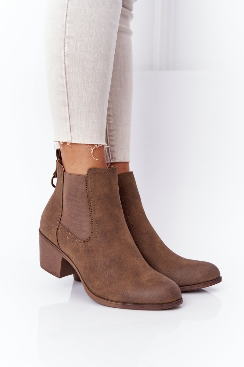 Damskie Ocieplane Botki Sztyblety Na Obcasie Khaki Trinity