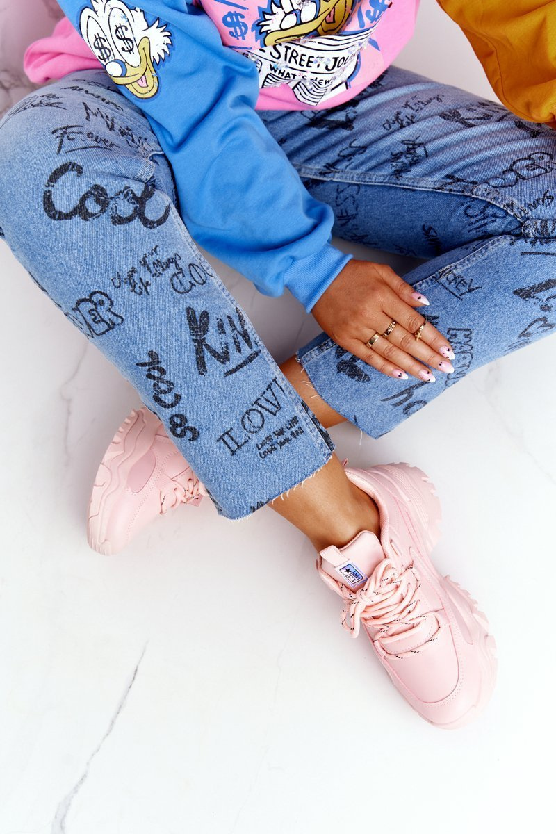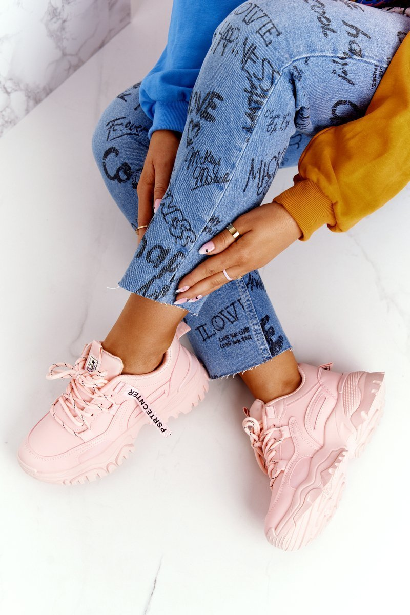 Damskie Sneakersy Na Masywnej Podeszwie Różowe Laugh