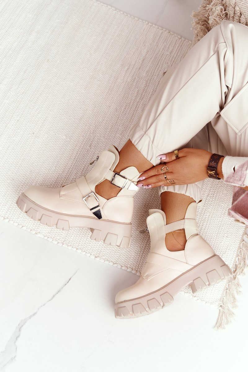 Damskie Botki Workery Na Platformie Beżowe Cosmic Love