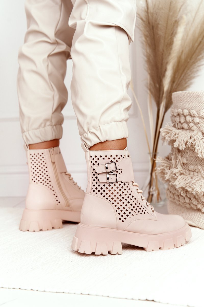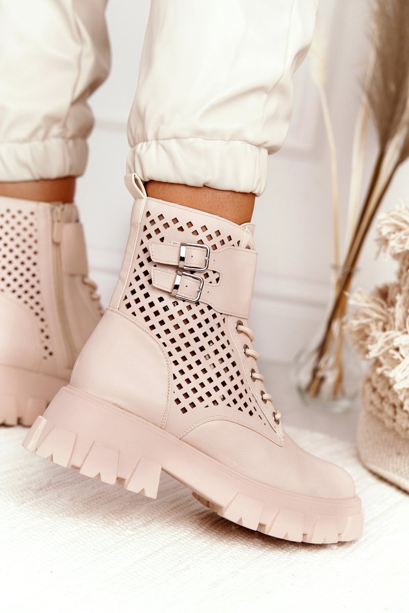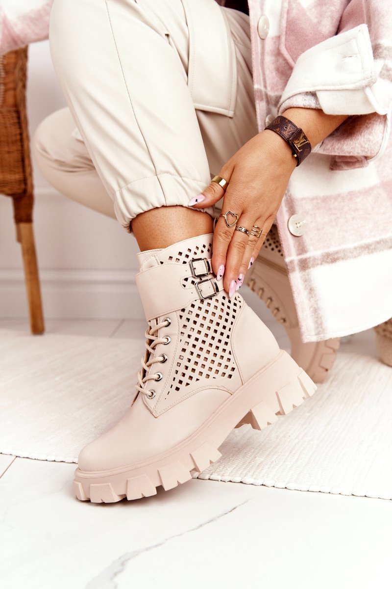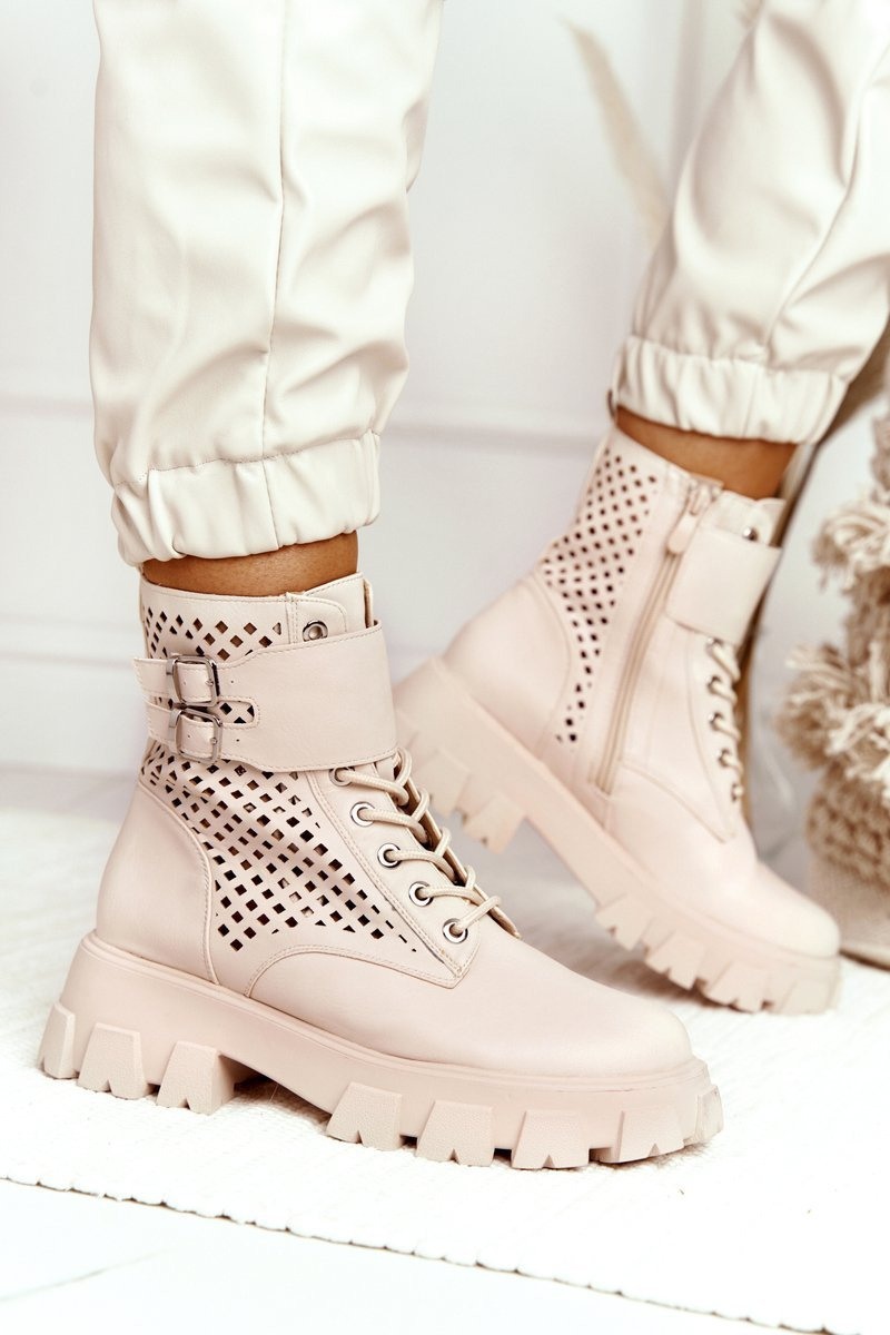 Ażurowe Botki Workery Na Platformie Beżowe Blown Away