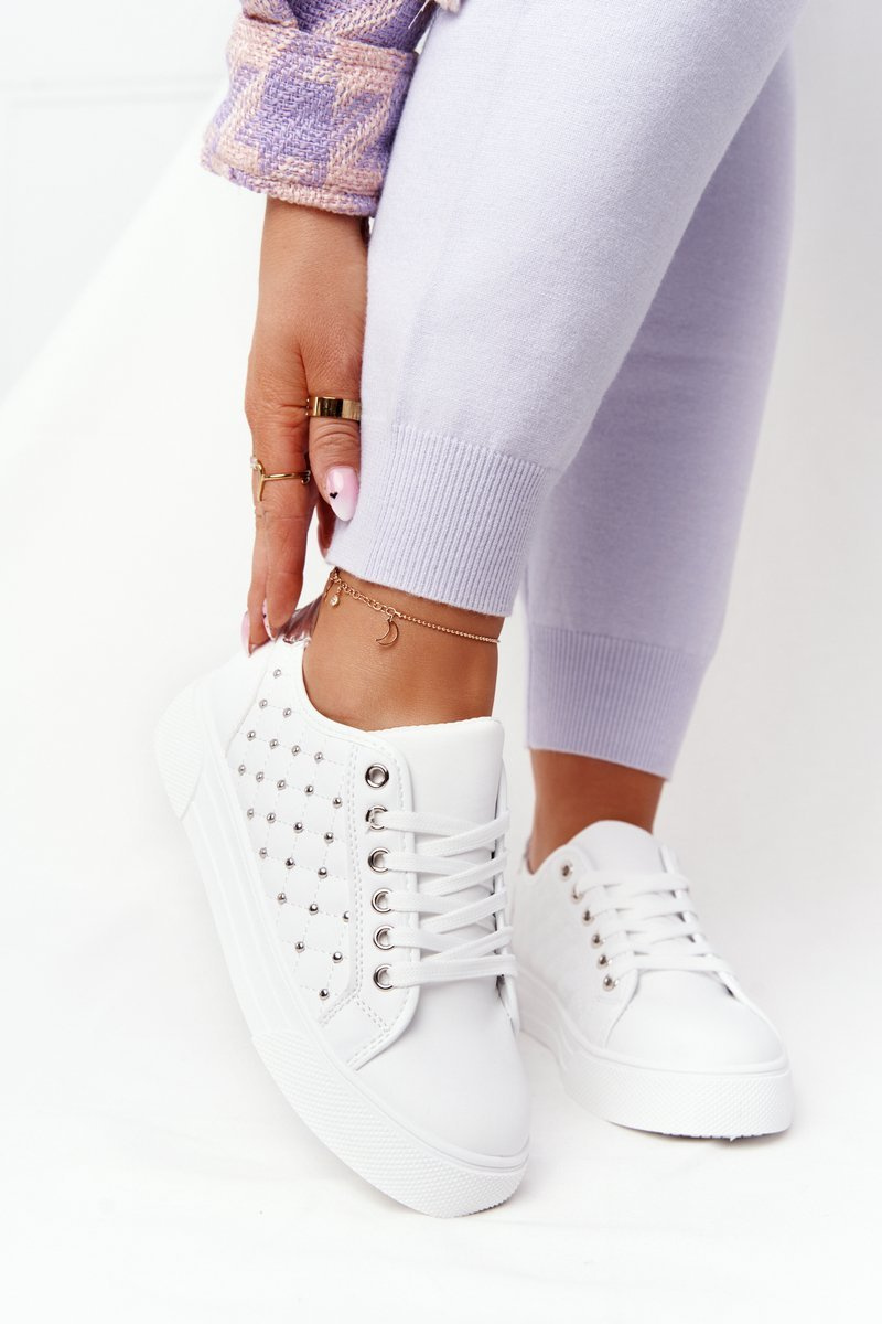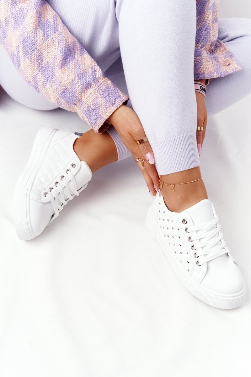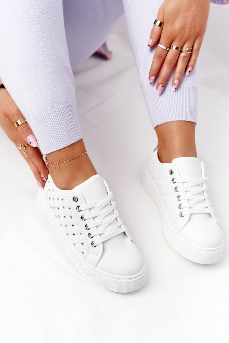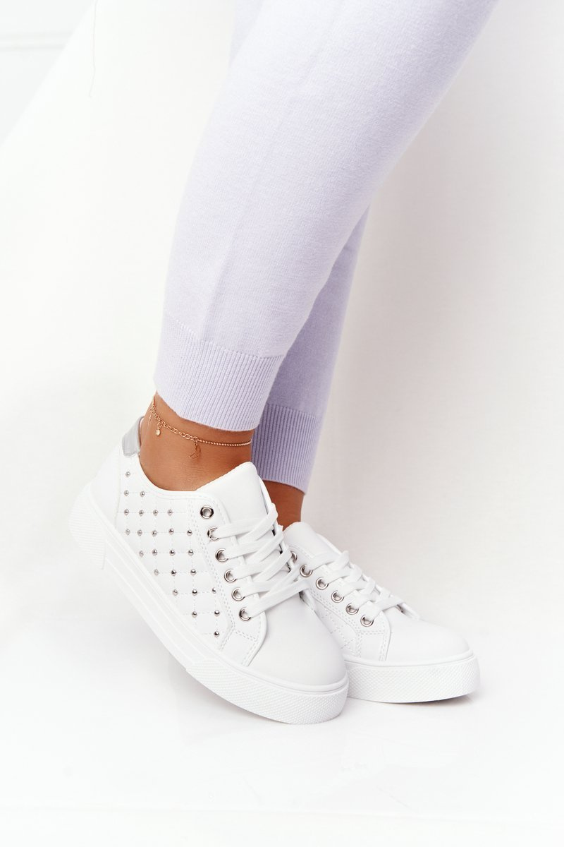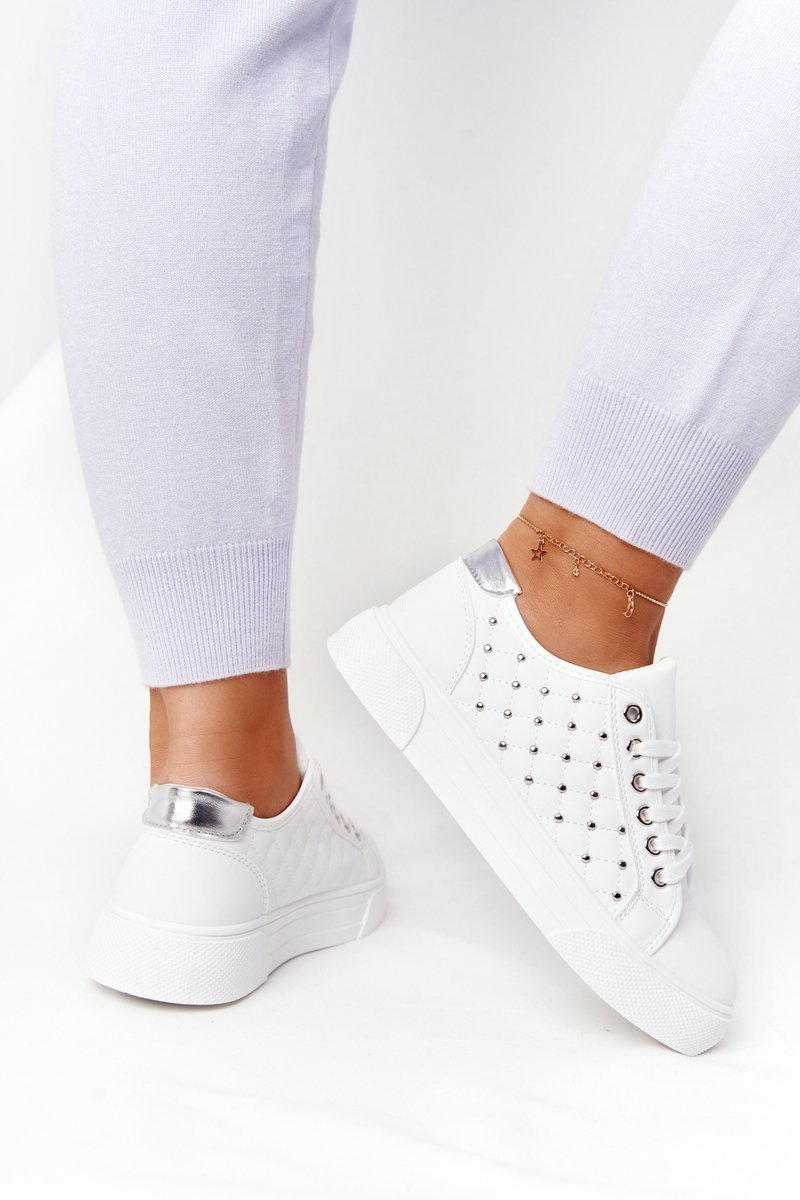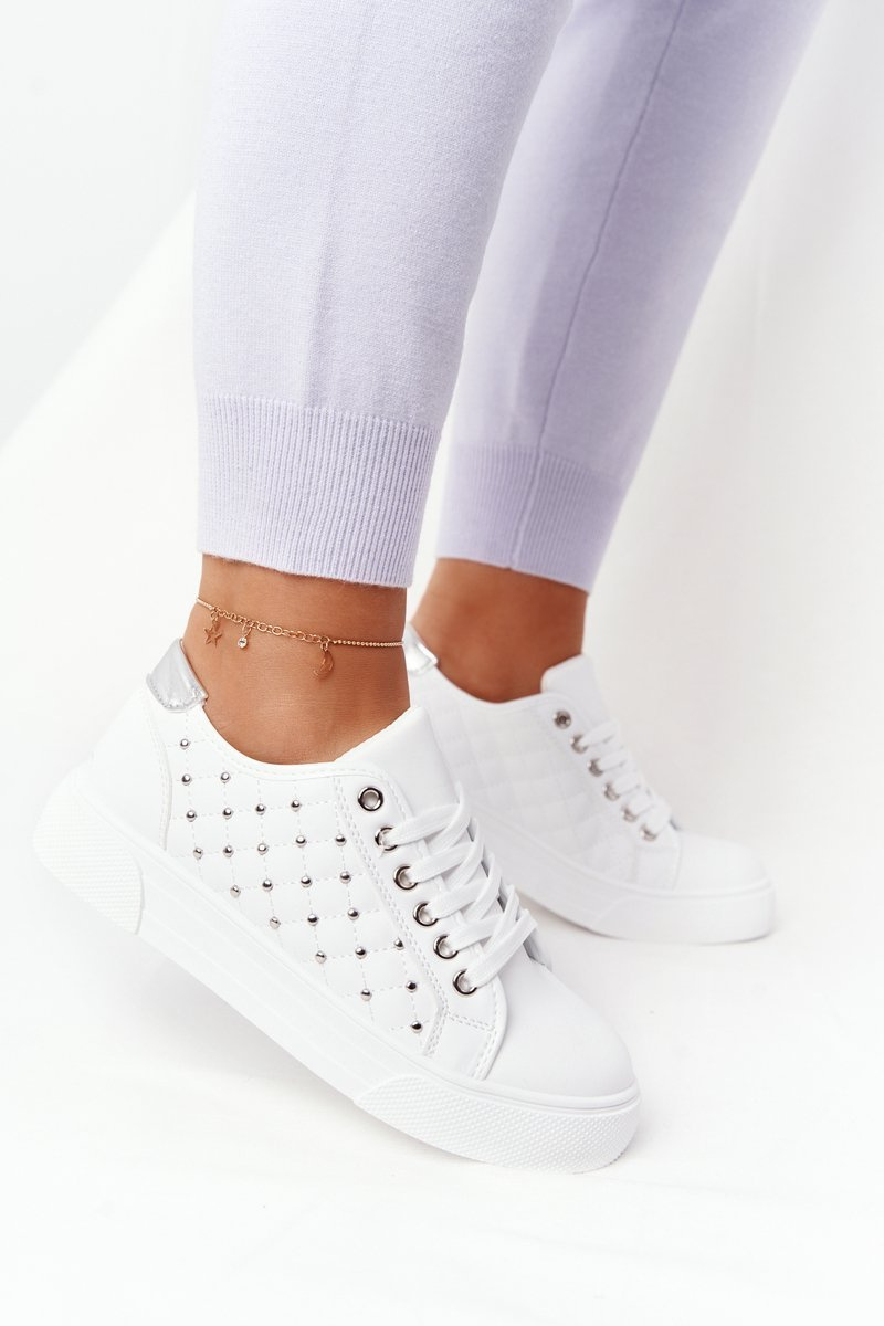 Damskie Tenisówki Z Pikowaniem Biało-Srebrne Fondness
