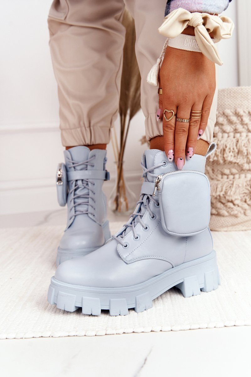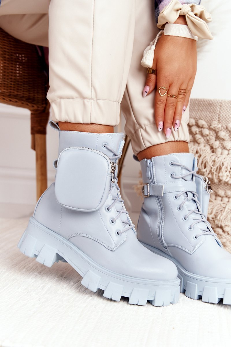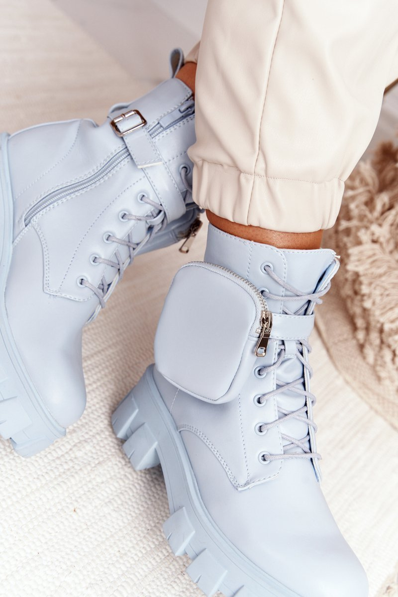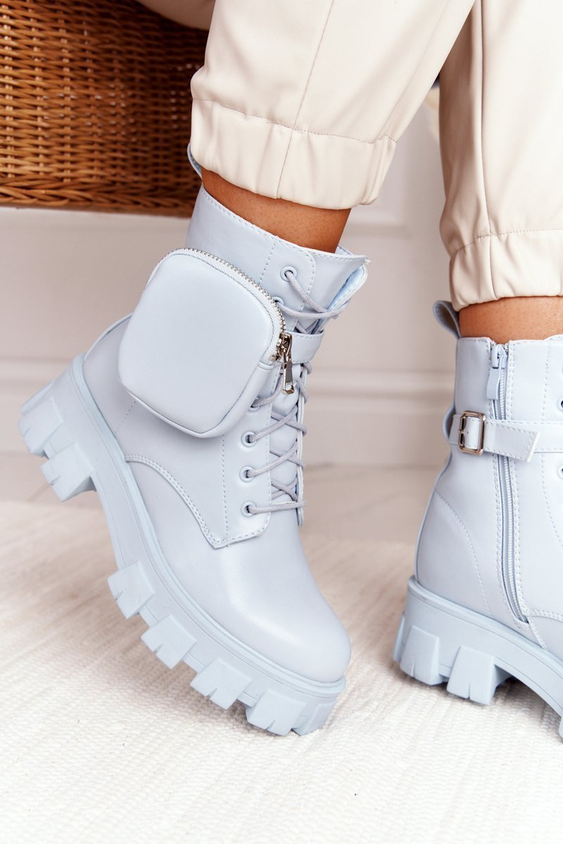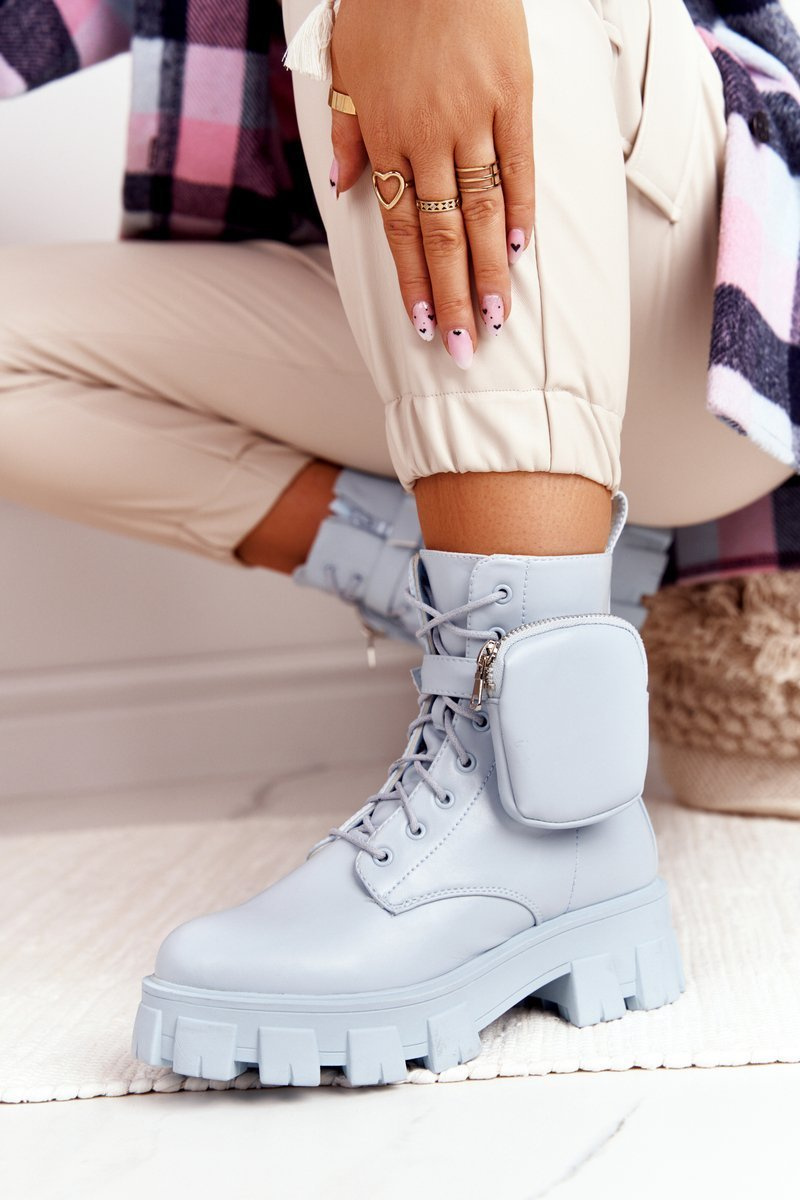Botki Workery Na Platformie z Nerką Niebieskie Saturday