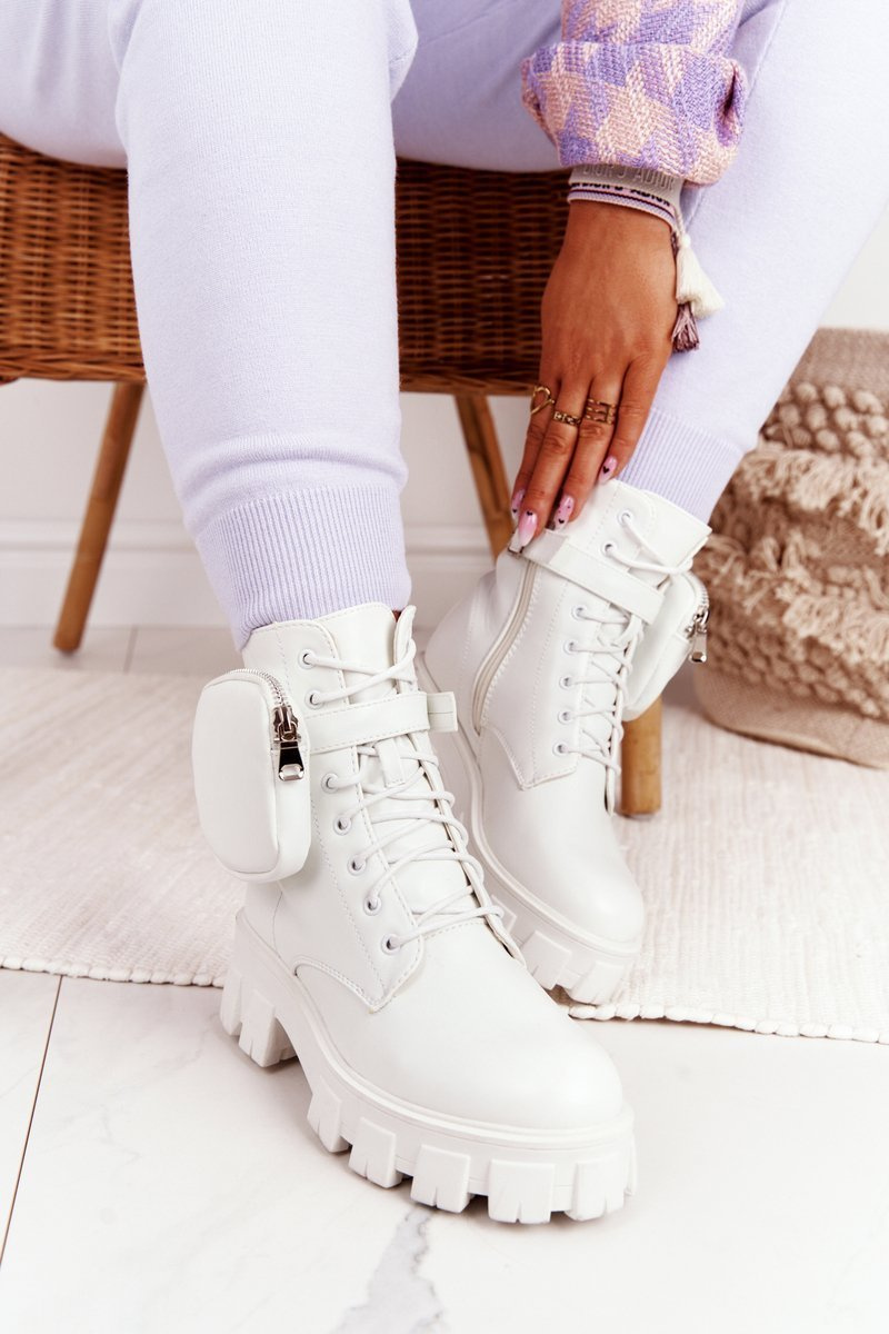 Botki Workery Na Platformie z Nerką Białe Saturday