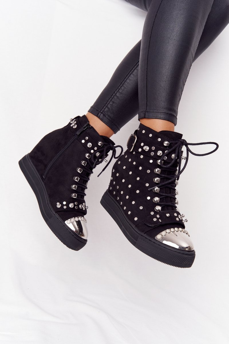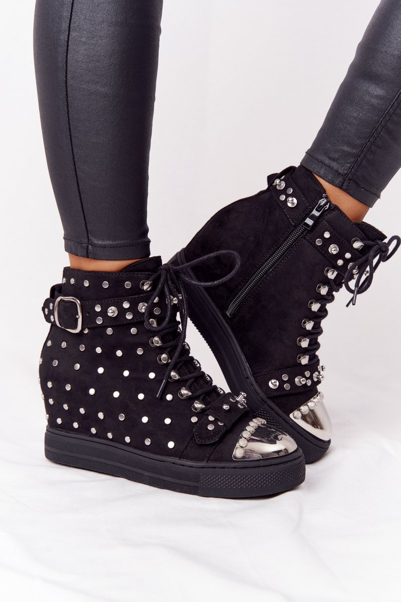 Ocieplane Botki Na Koturnie Z Dżetami Zamszowe Czarne Lu Boo