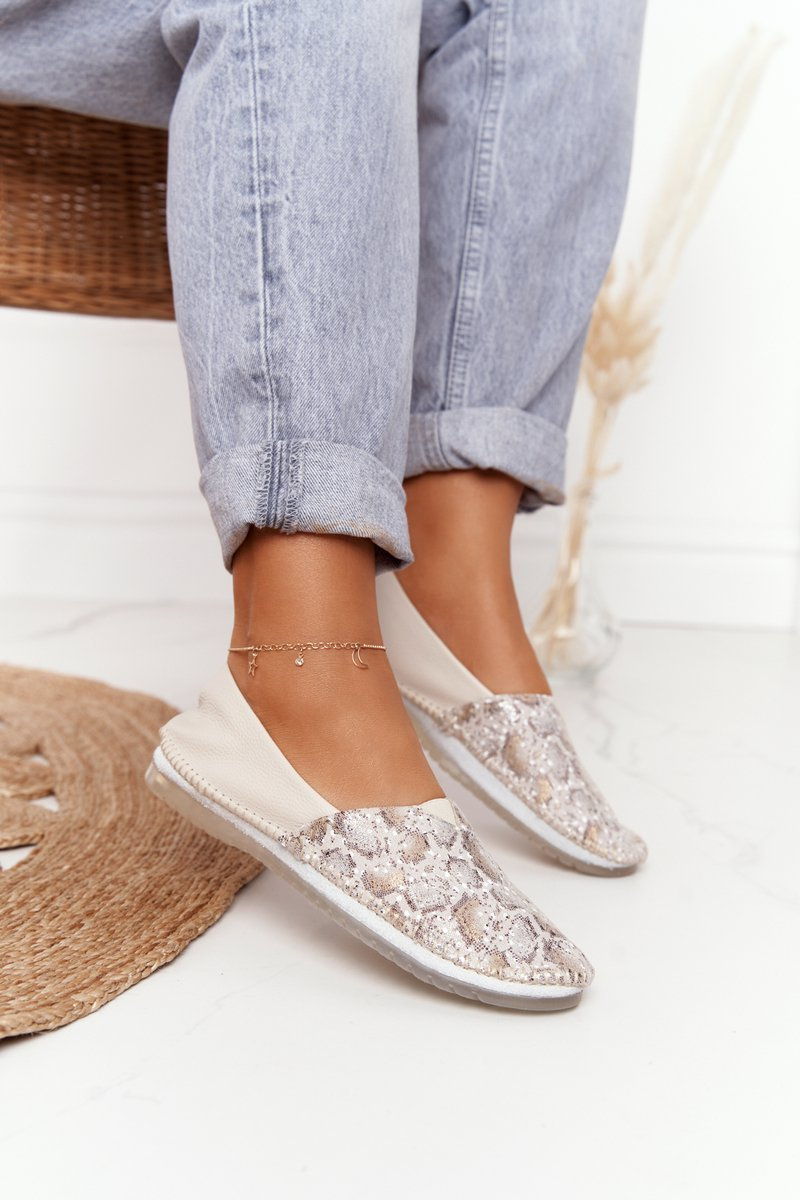Damskie Skórzane Baleriny Maciejka Beżowo-Złote 01930-81