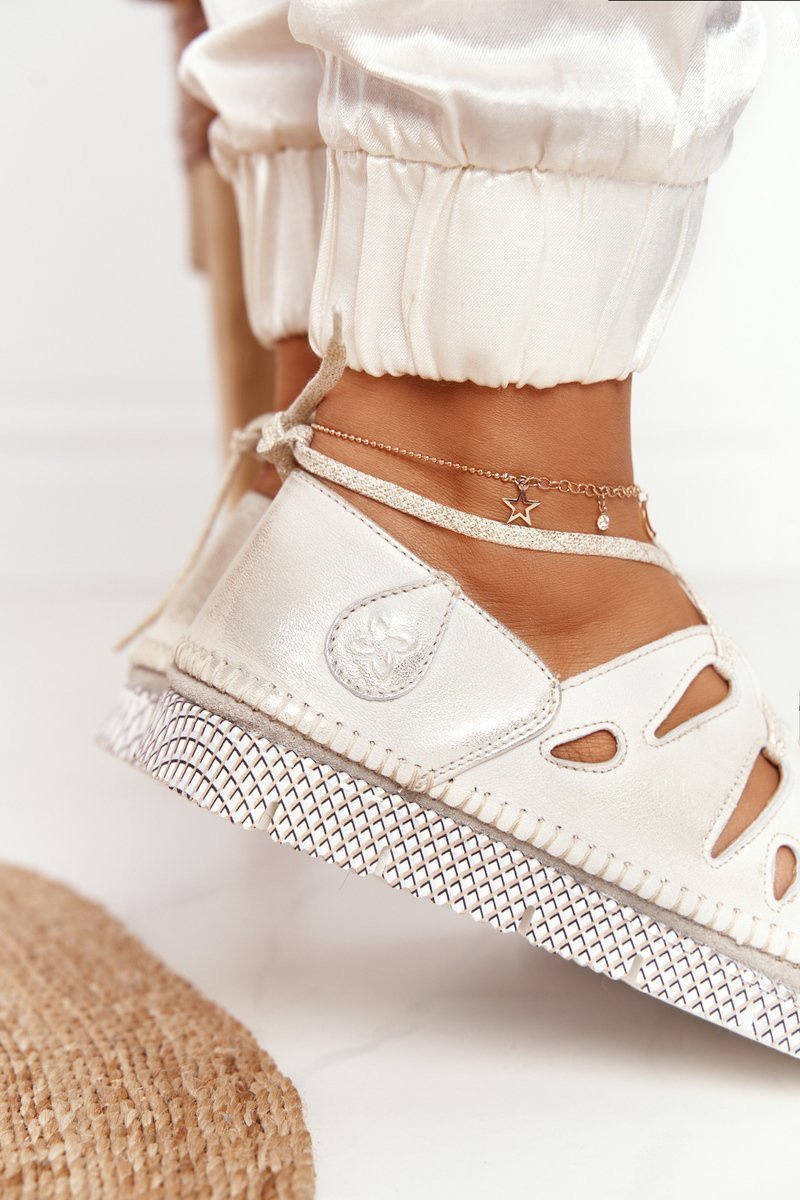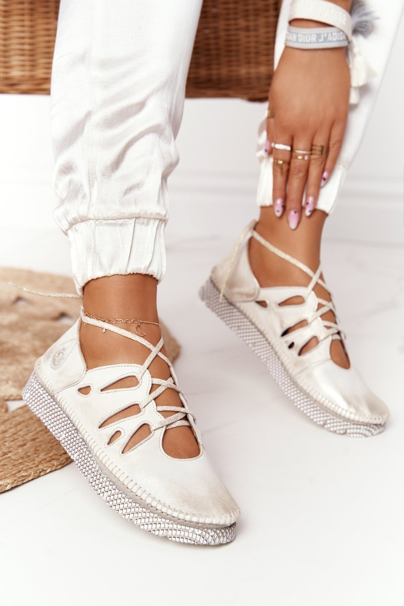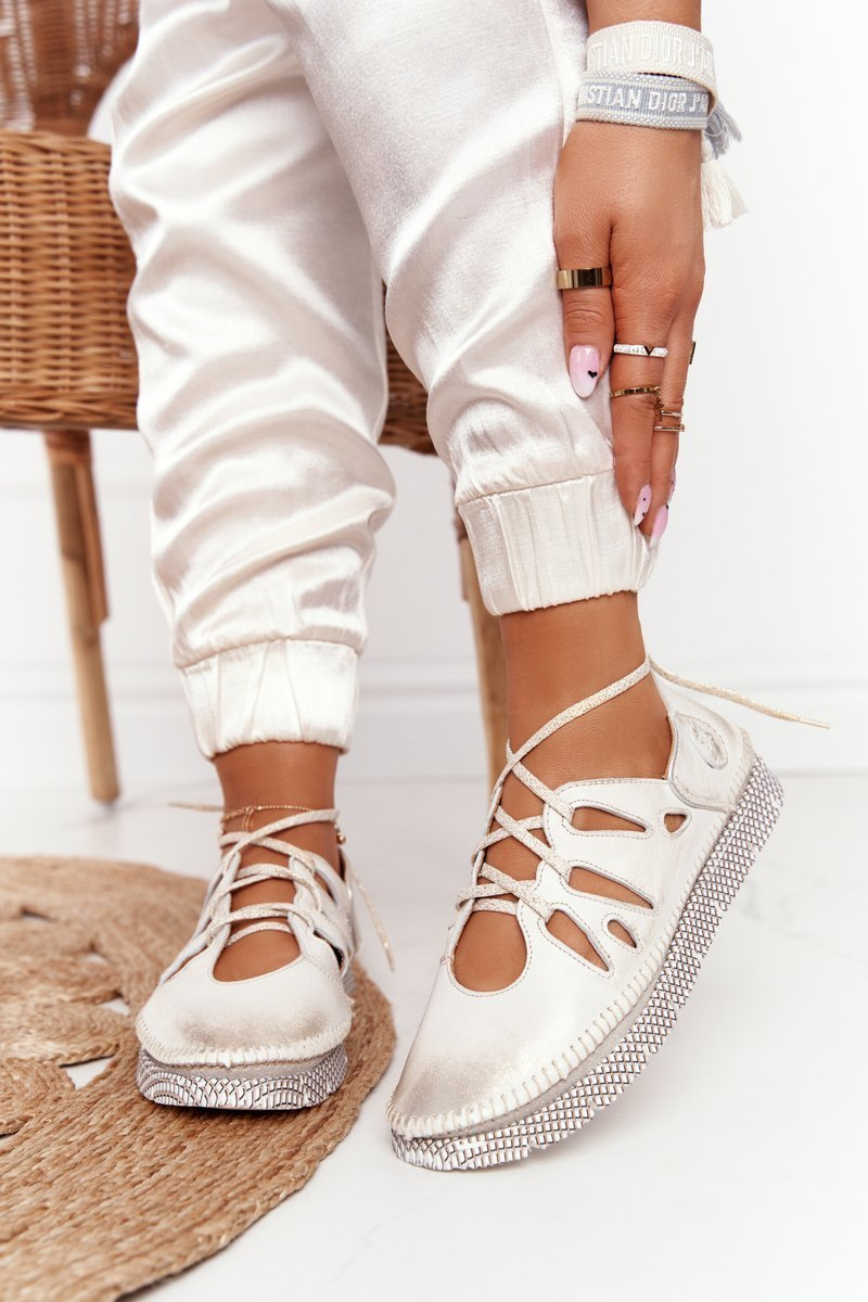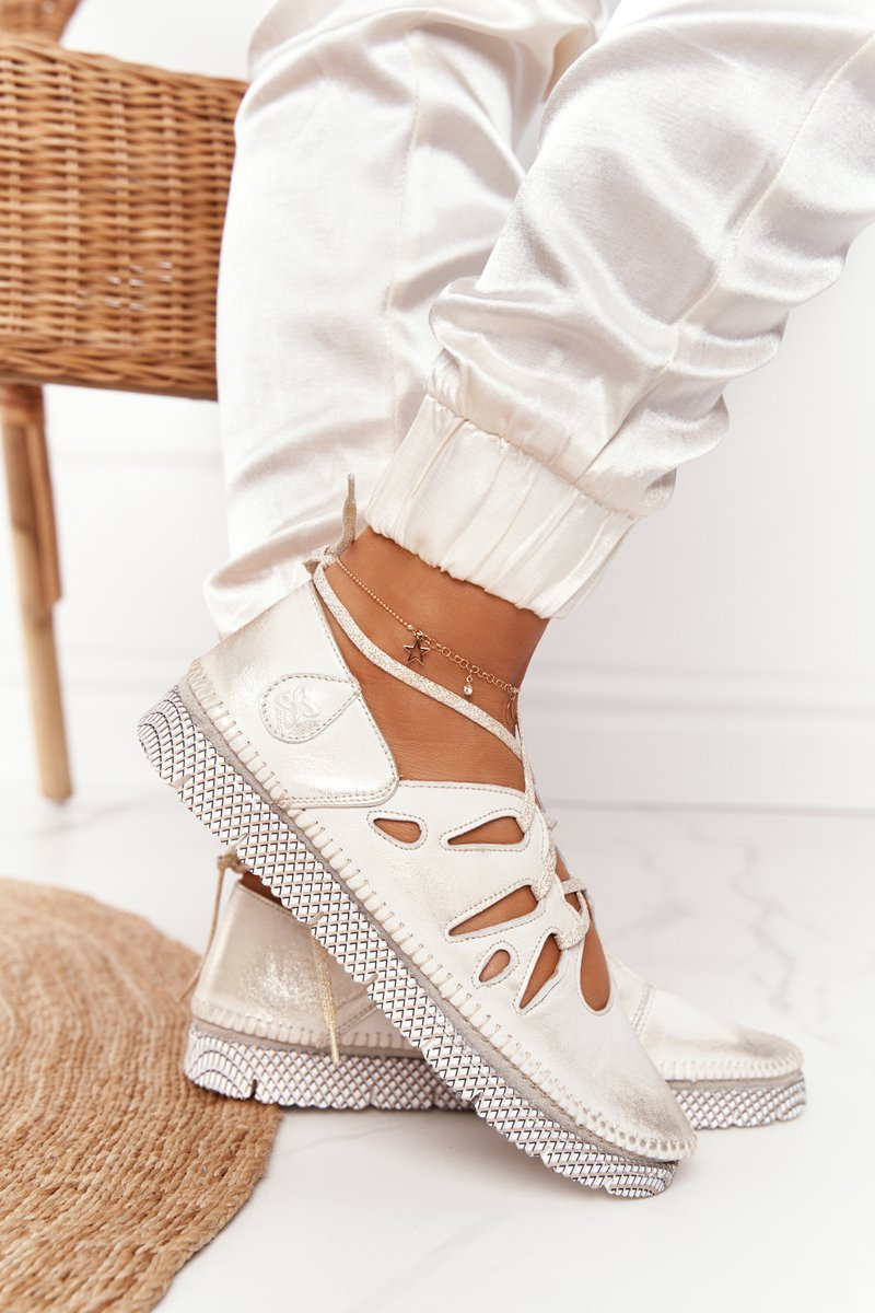 Damskie Skórzane Półbuty Maciejka Beżowo-Złote 04449-25